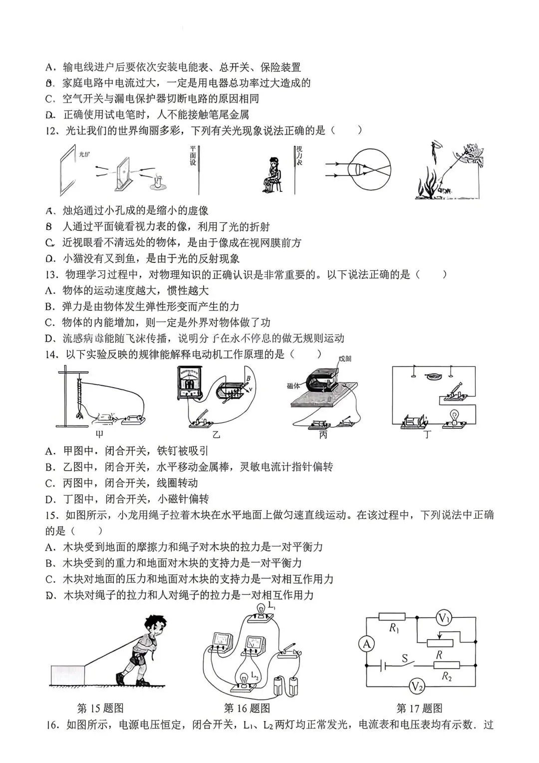 2026.4济南市高新区一模物理试卷及答案