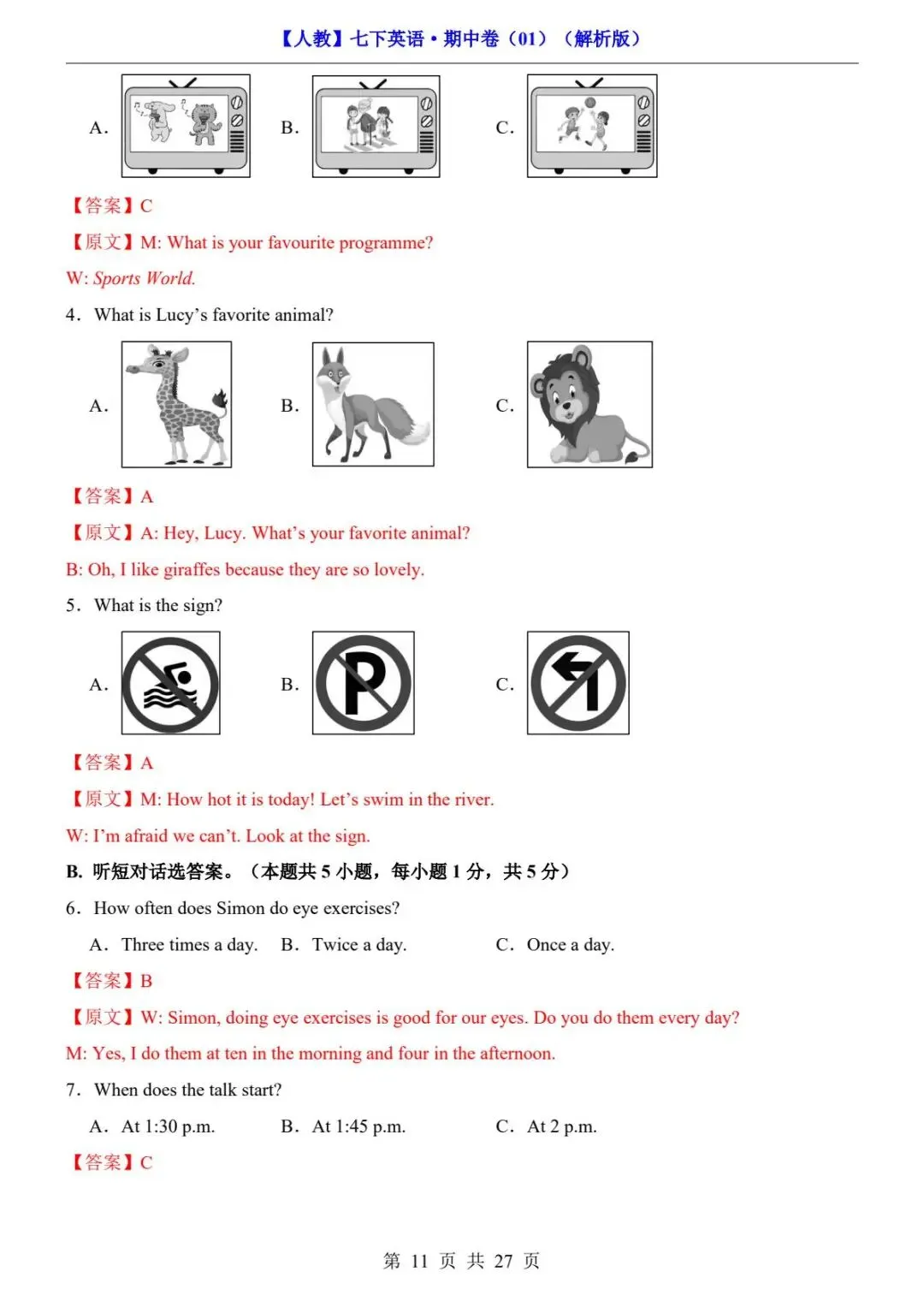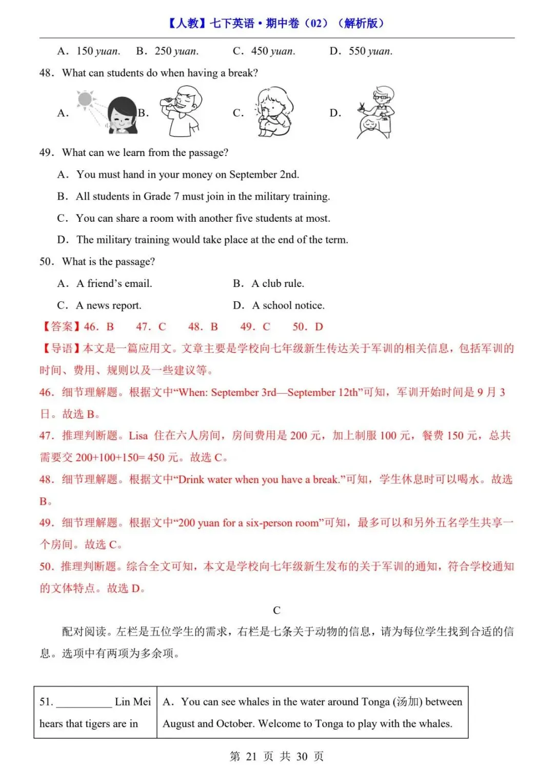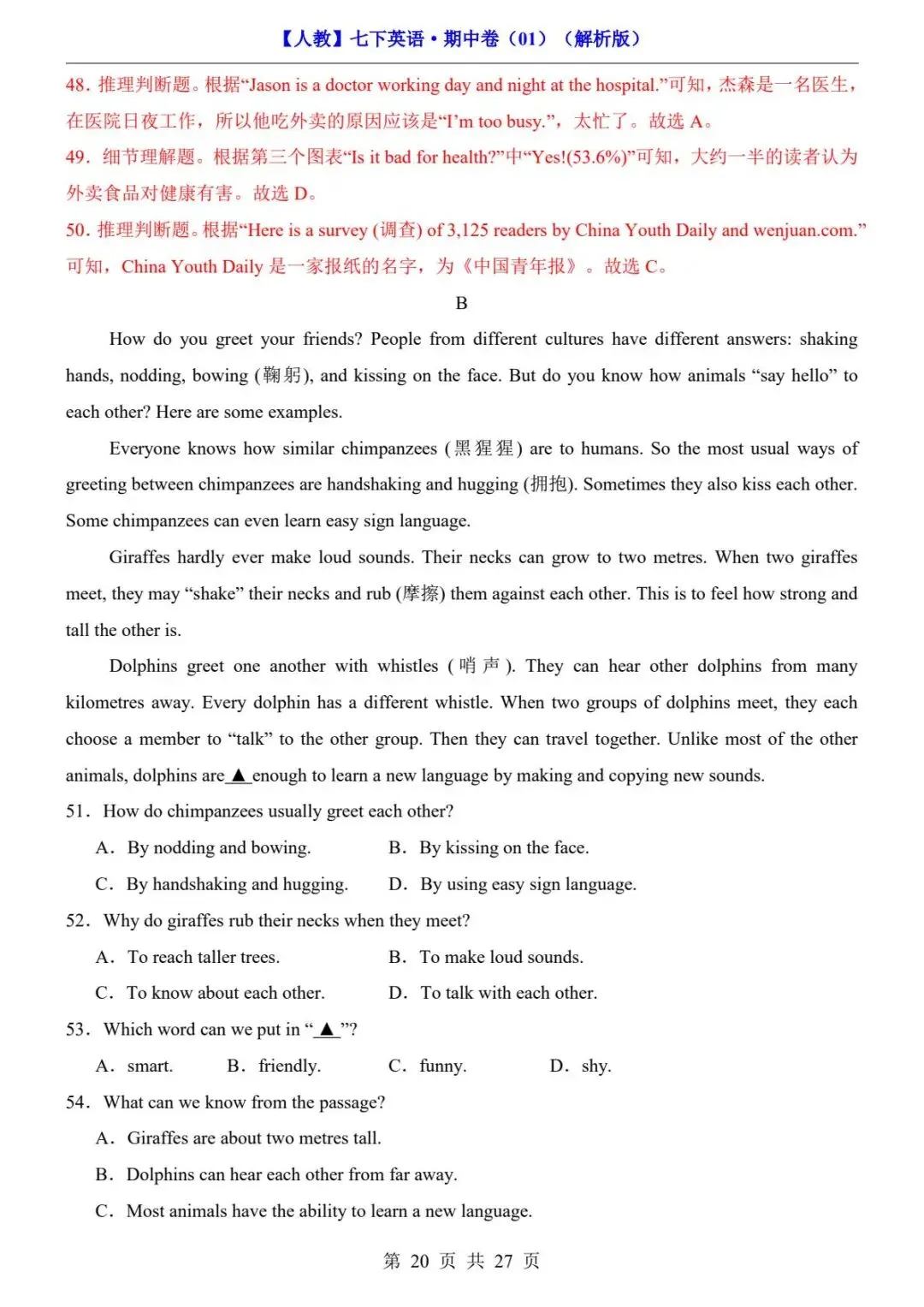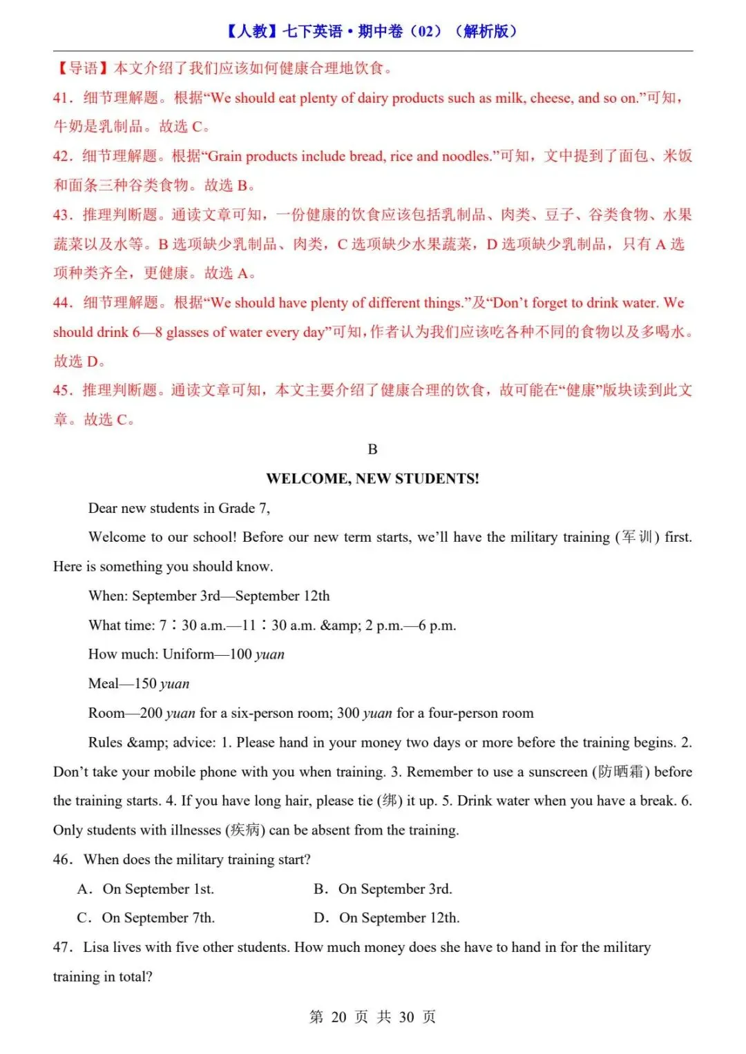 26春人教版七年级下册(英语)期中考试真题测试卷《共2套》+答案解析.高清电子版可打印下载!