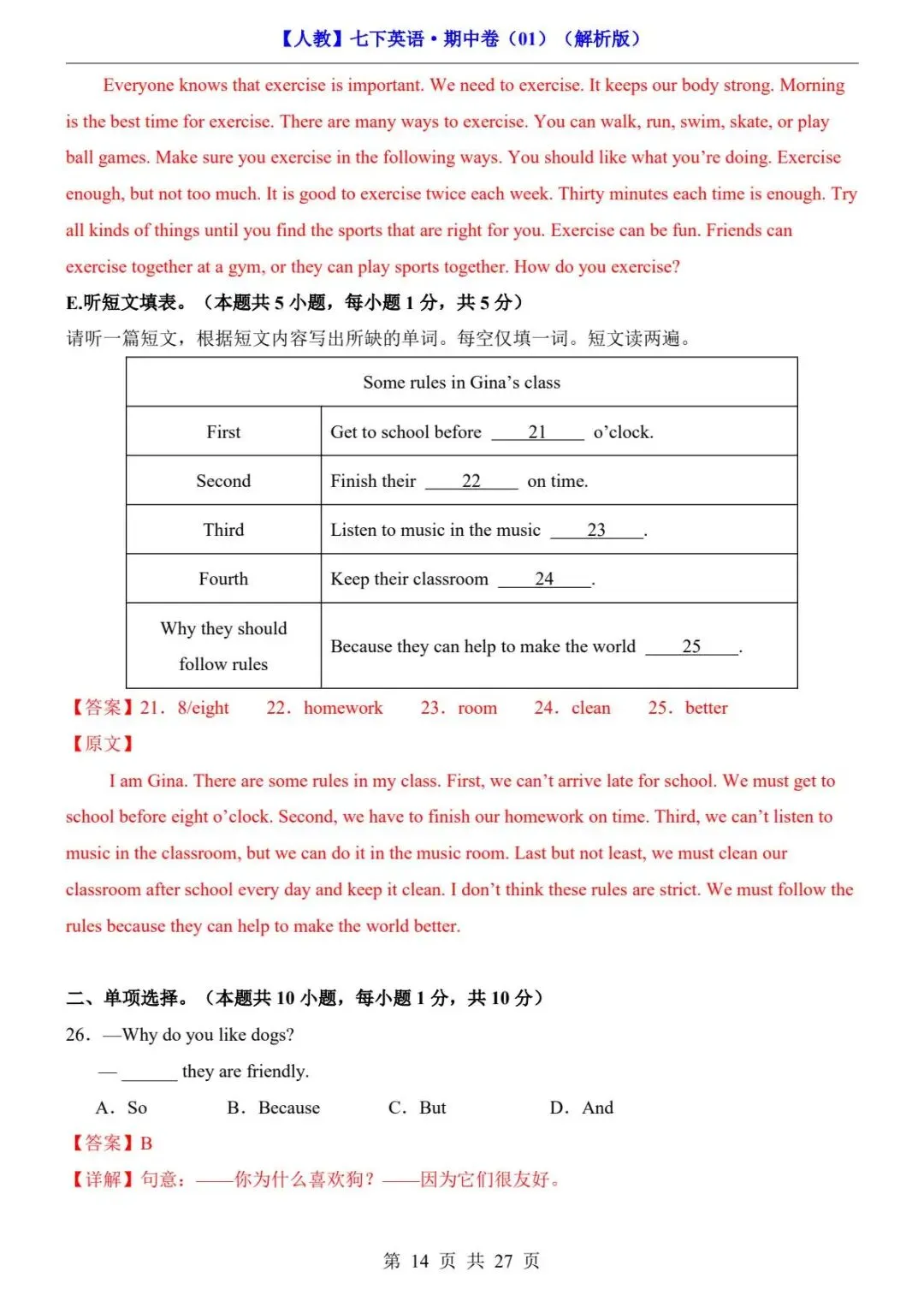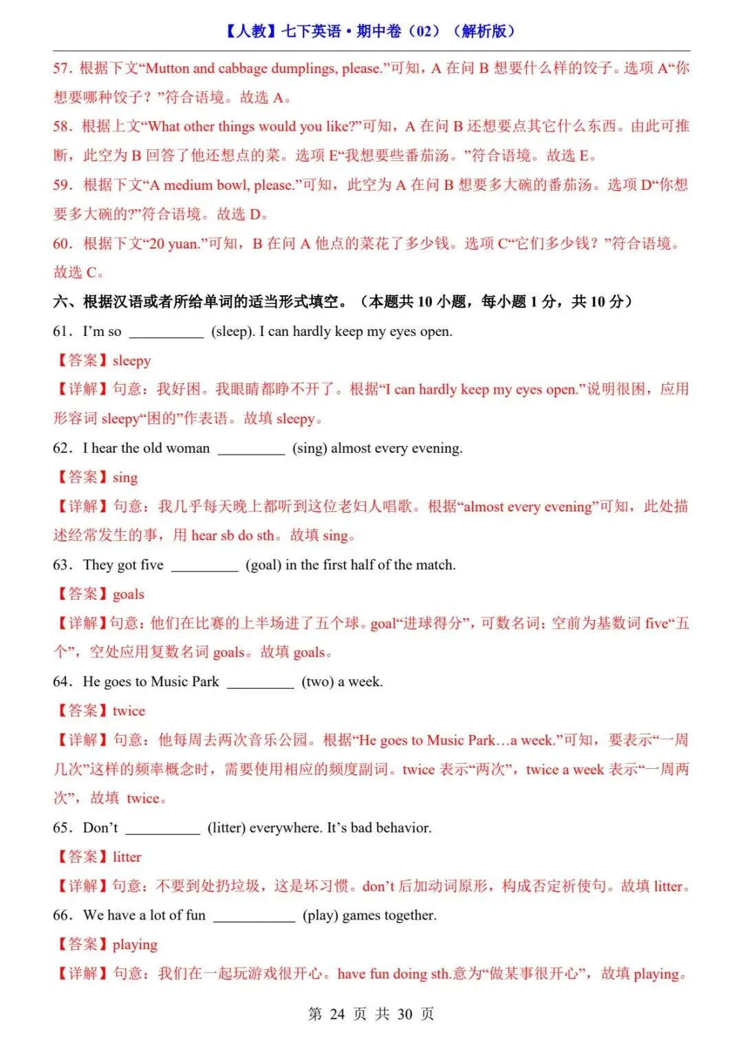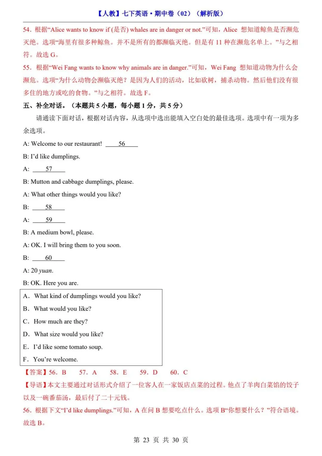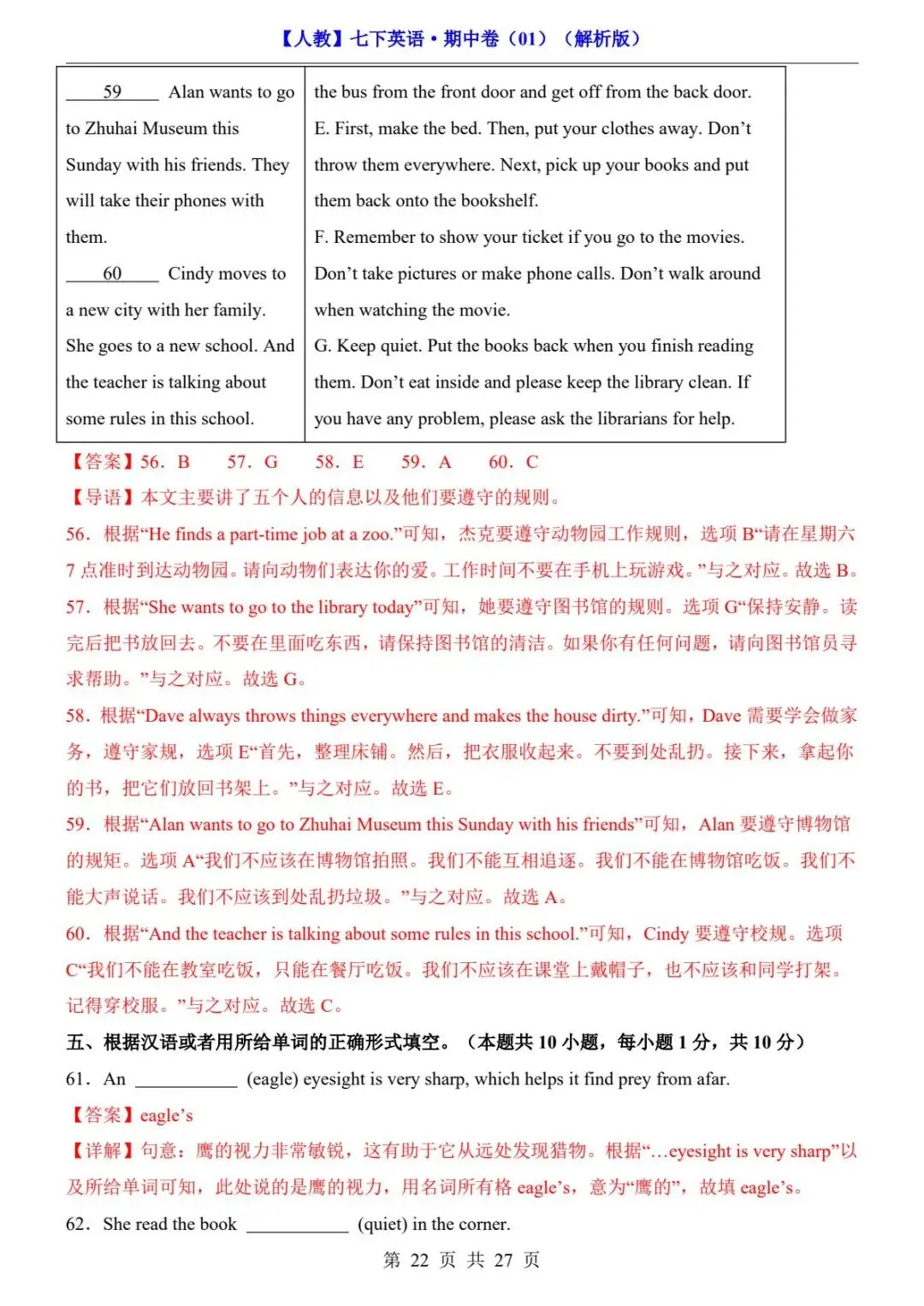 26春人教版七年级下册(英语)期中考试真题测试卷《共2套》+答案解析.高清电子版可打印下载!