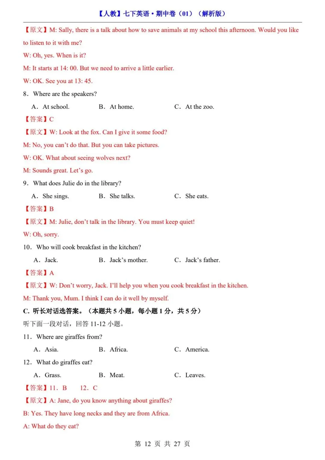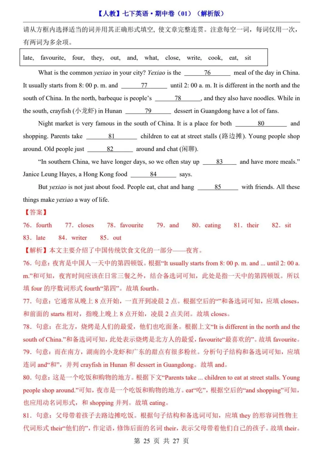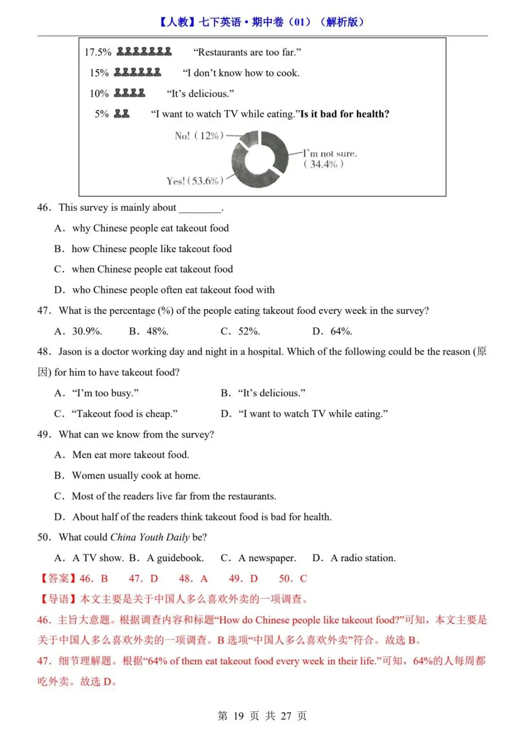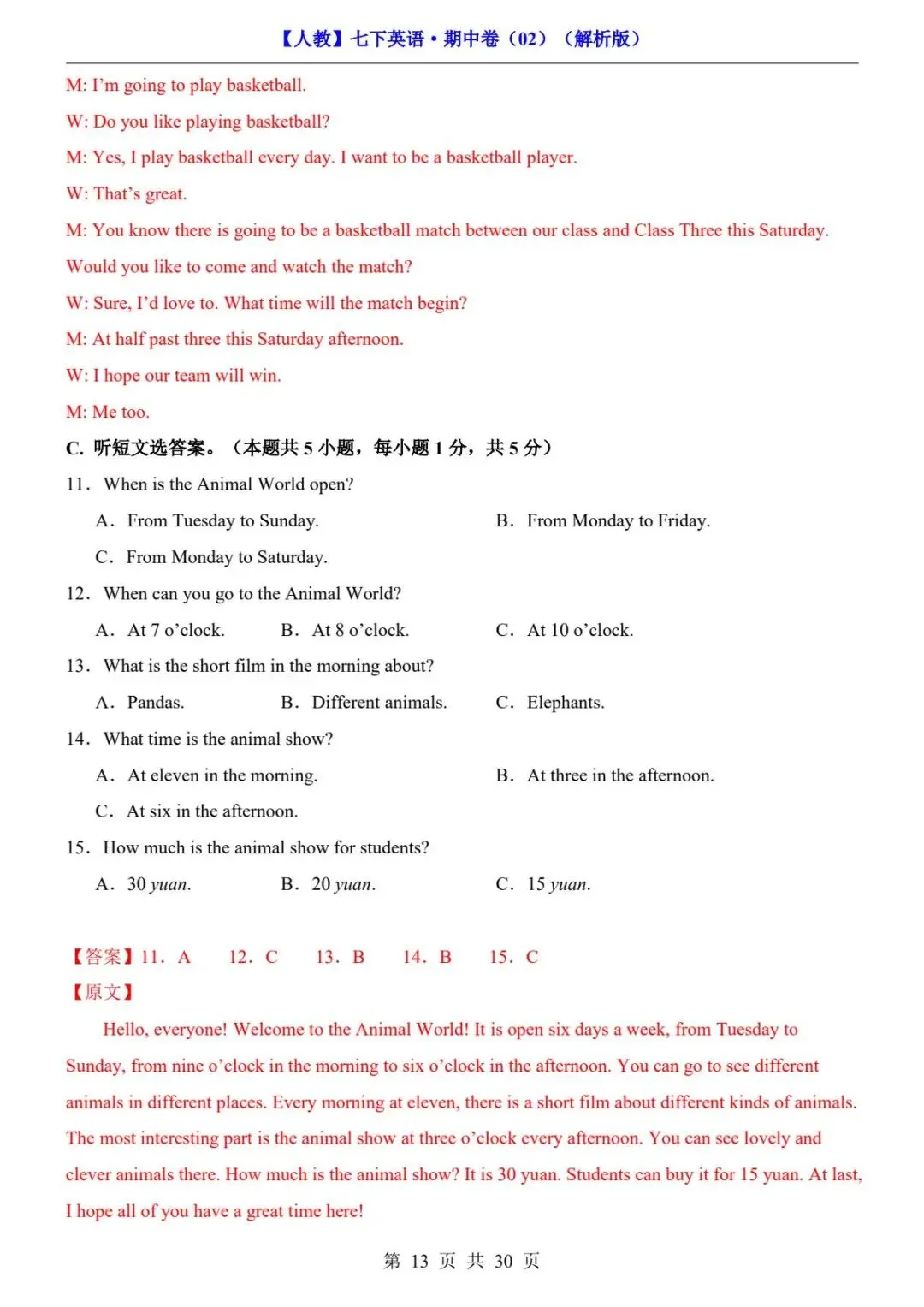 26春人教版七年级下册(英语)期中考试真题测试卷《共2套》+答案解析.高清电子版可打印下载!