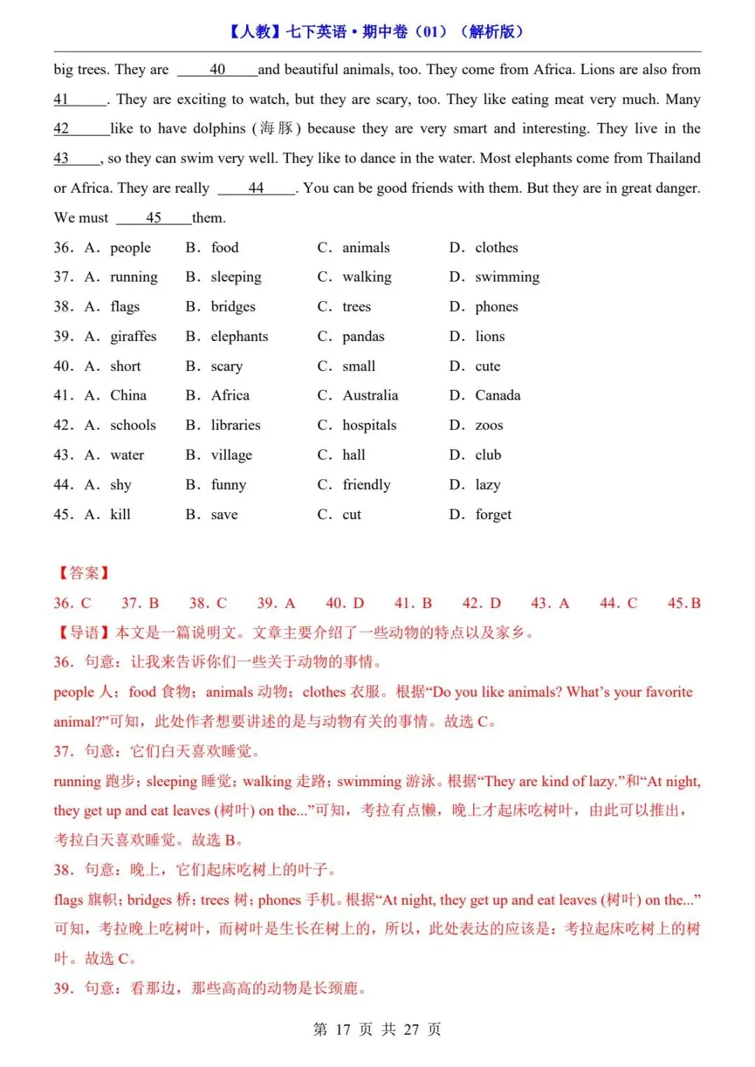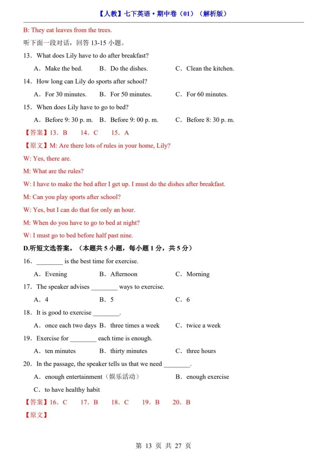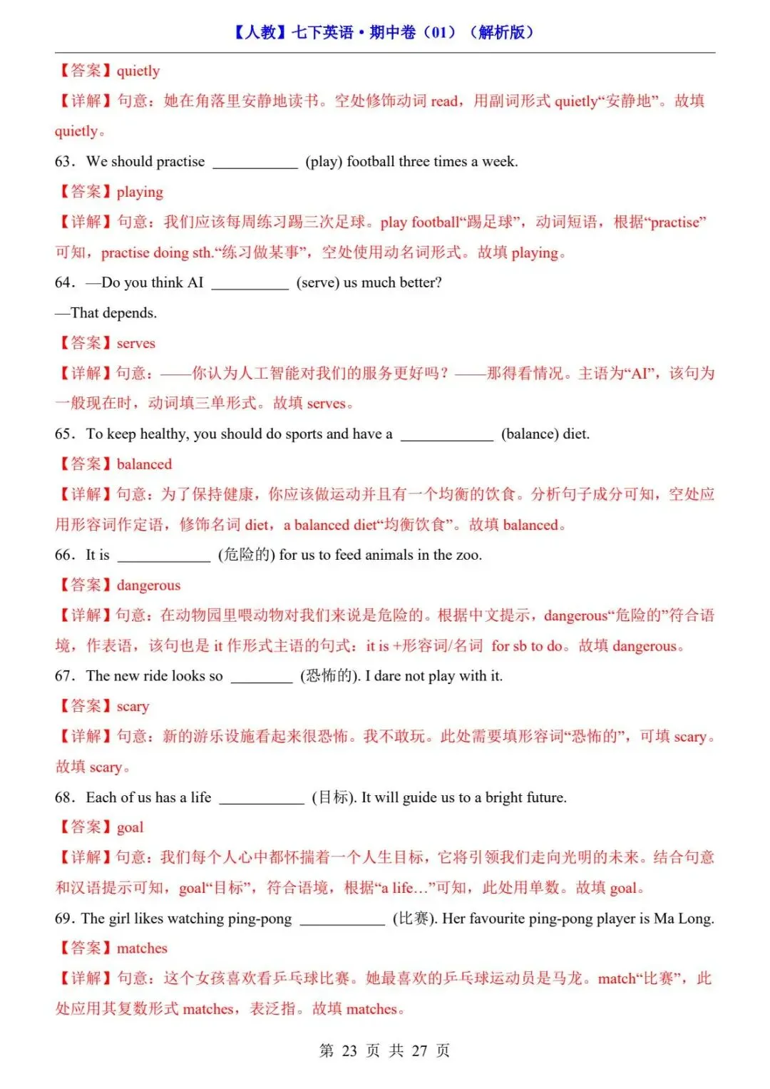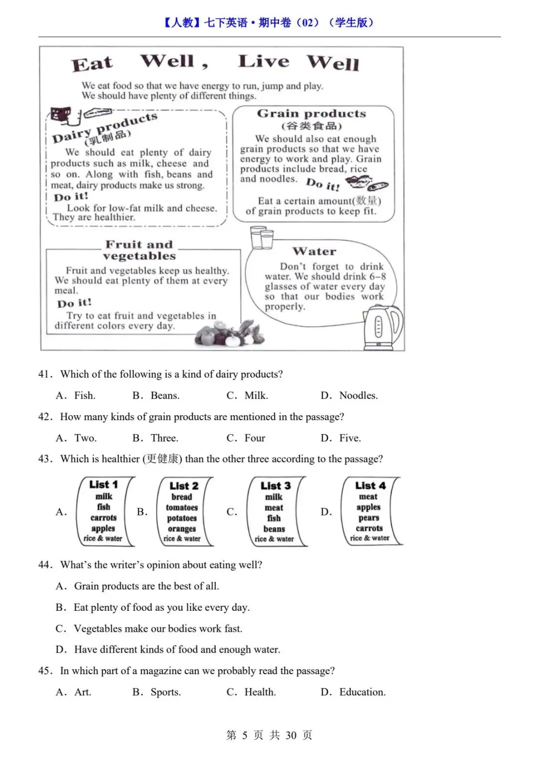 26春人教版七年级下册(英语)期中考试真题测试卷《共2套》+答案解析.高清电子版可打印下载!