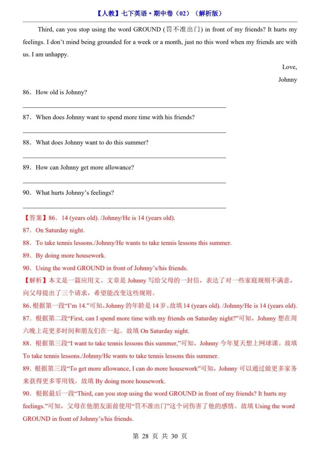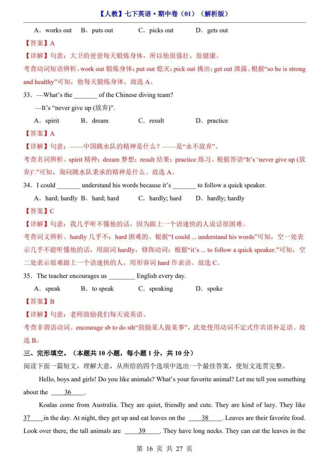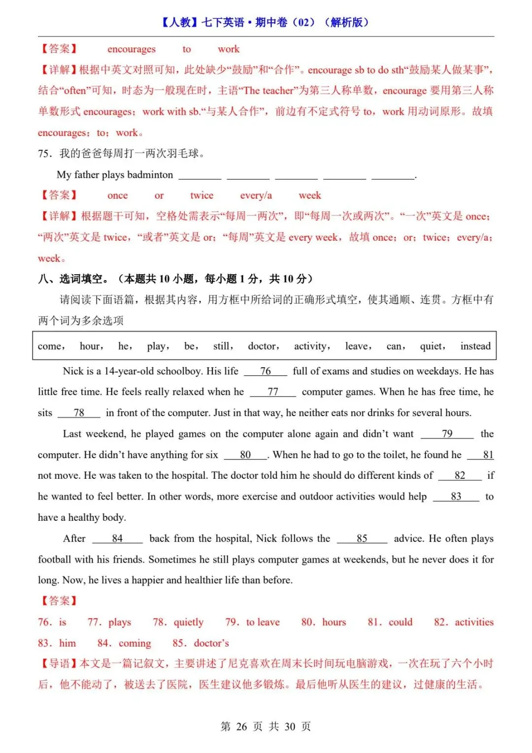🎉今天分享:26春人教版七年级下册(英语)期中考试真题测试卷《共2套》+答案解析。高清电子版可打印下载!有需要的家长同学抓紧领取一份打印出来🖨️给孩子练一练吧✍欢迎转发分享到班群或朋友圈,助力更多孩子高效学习。