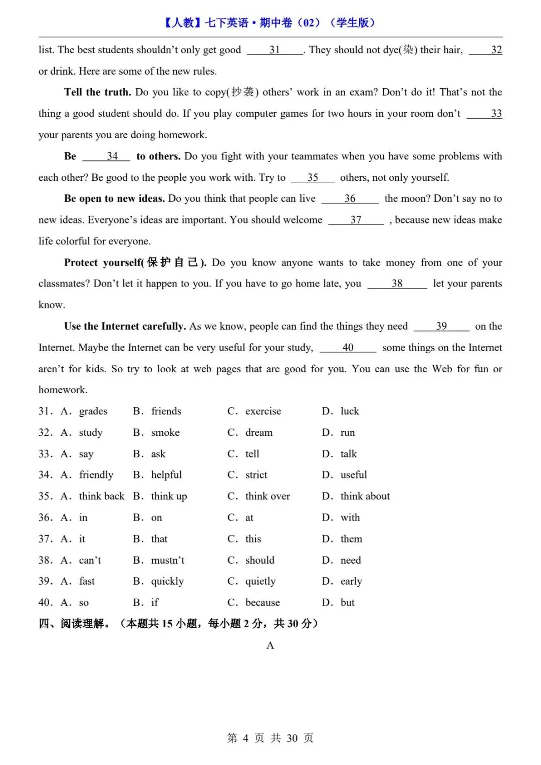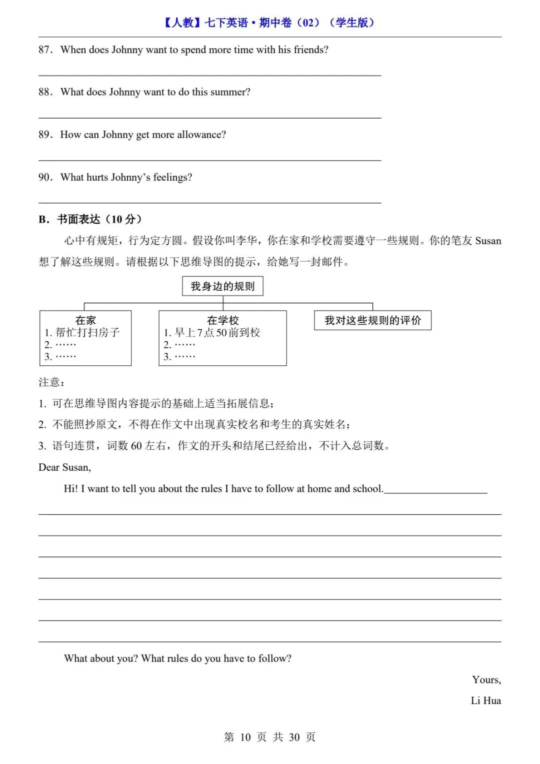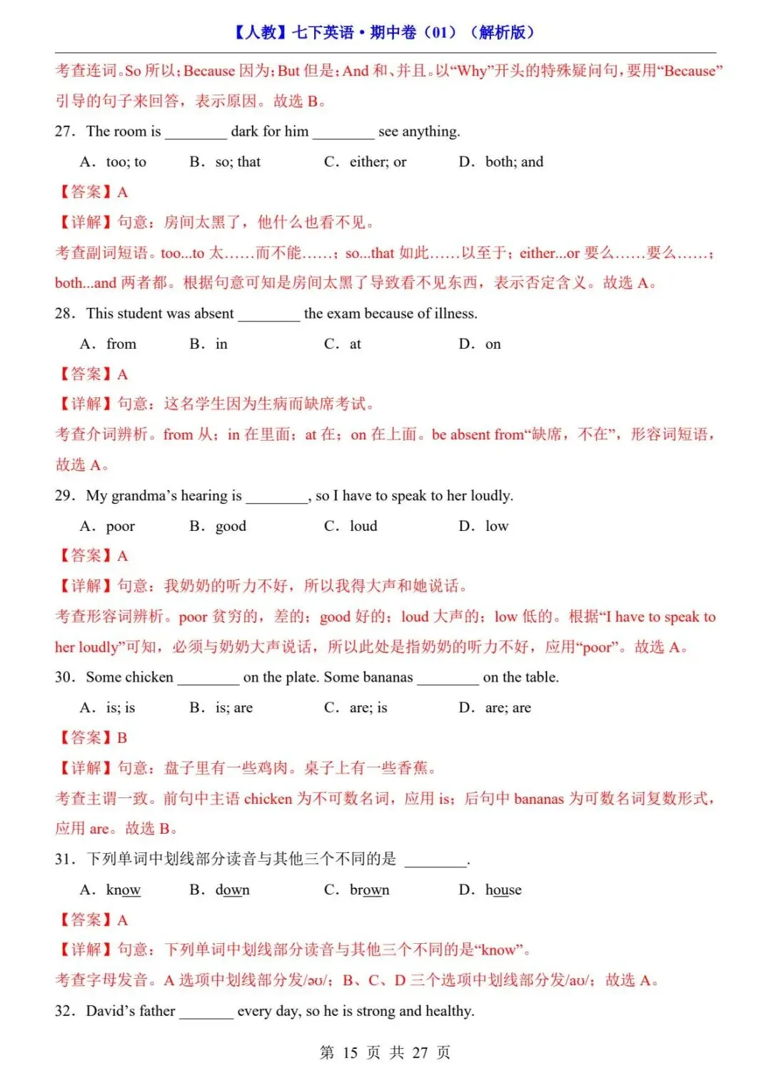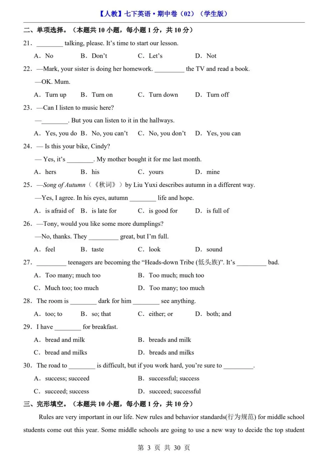 🎉今天分享:26春人教版七年级下册(英语)期中考试真题测试卷《共2套》+答案解析。高清电子版可打印下载!有需要的家长同学抓紧领取一份打印出来🖨️给孩子练一练吧✍欢迎转发分享到班群或朋友圈,助力更多孩子高效学习。