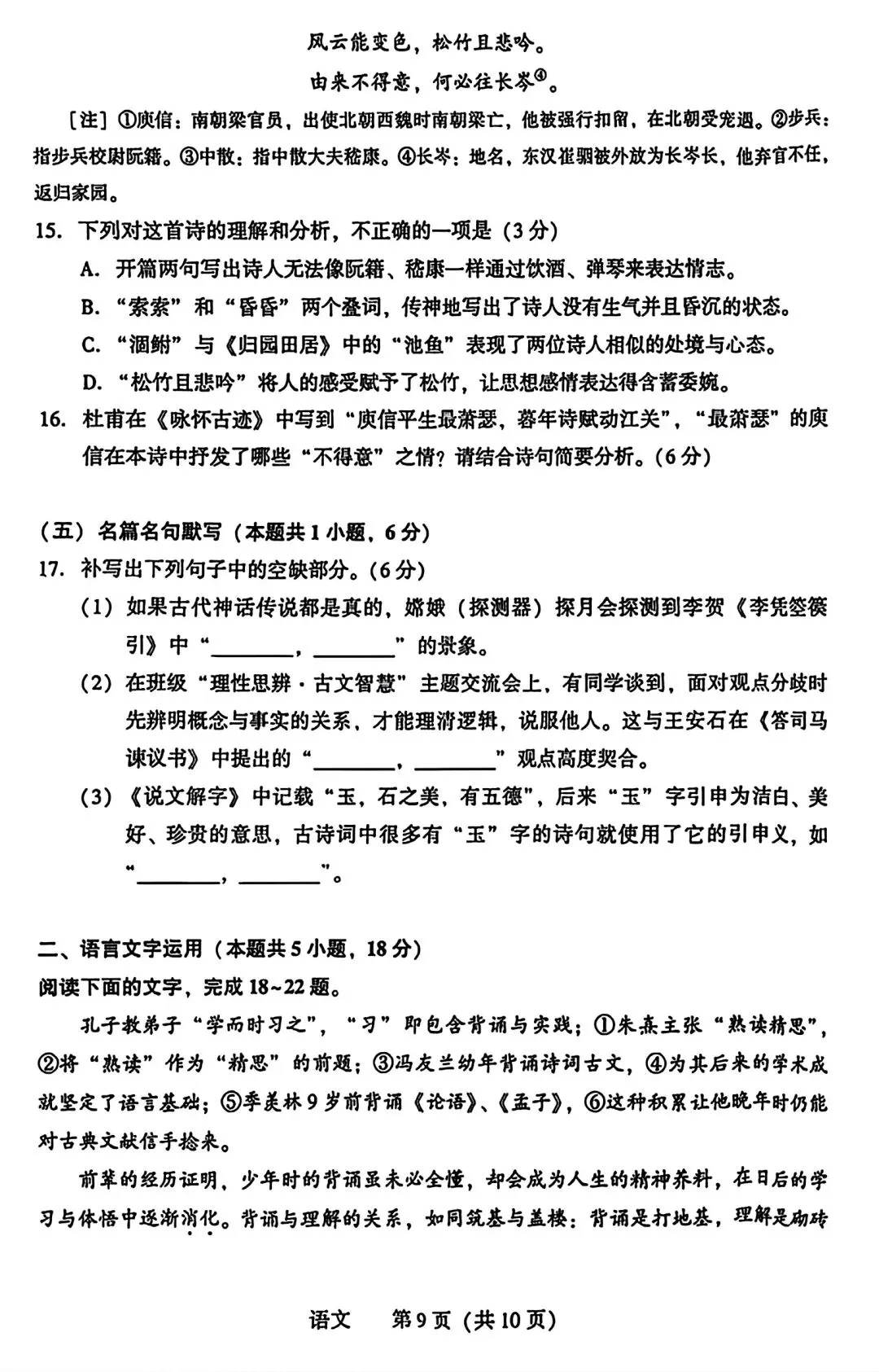 2025-2026辽宁沈阳高三下教学质量监测二模4月语文含答案(无水印).pdf