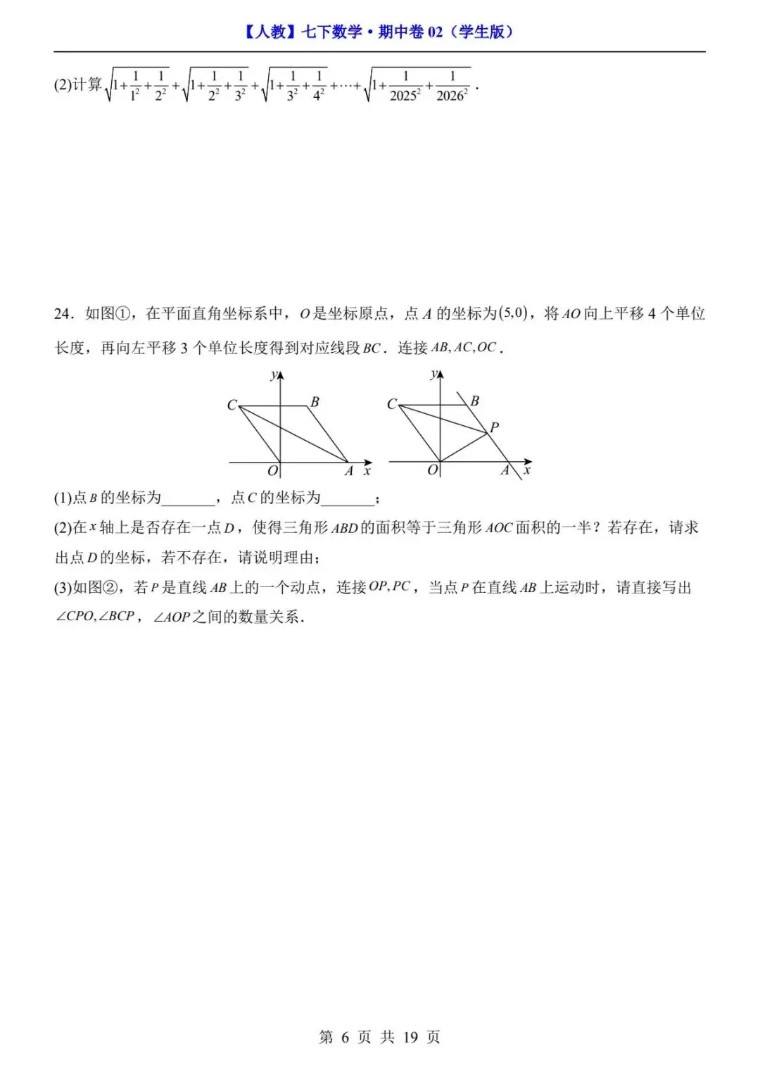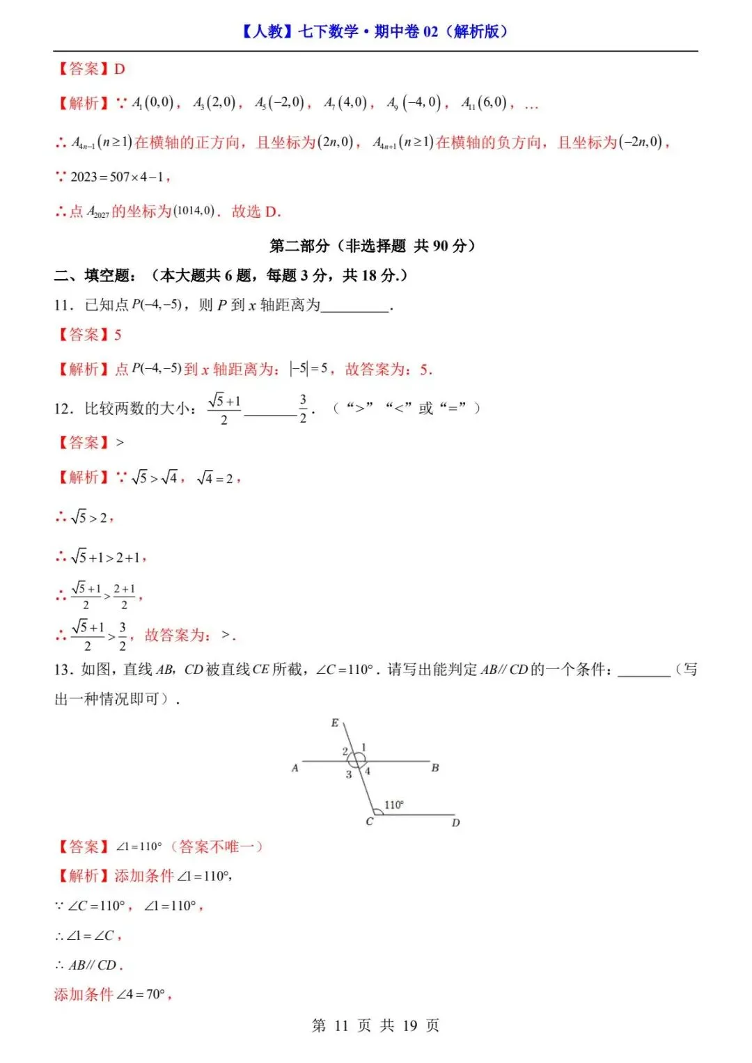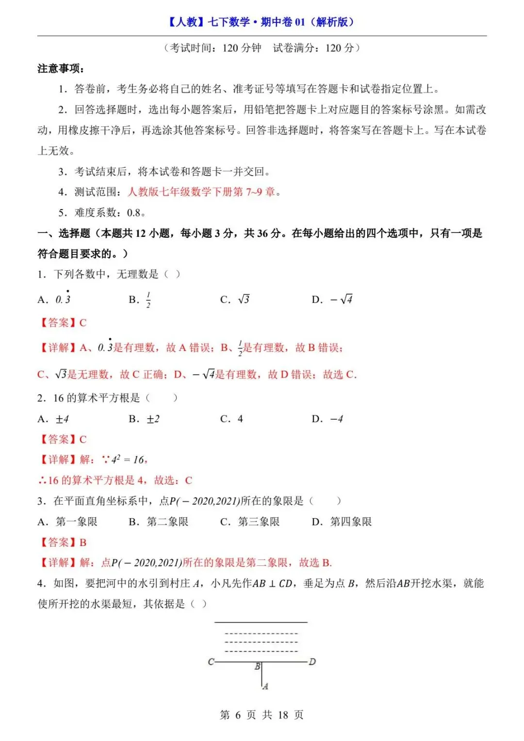 26春人教版七年级下册(数学)期中考试真题测试卷《共2套》+答案解析.高清电子版可打印下载!
