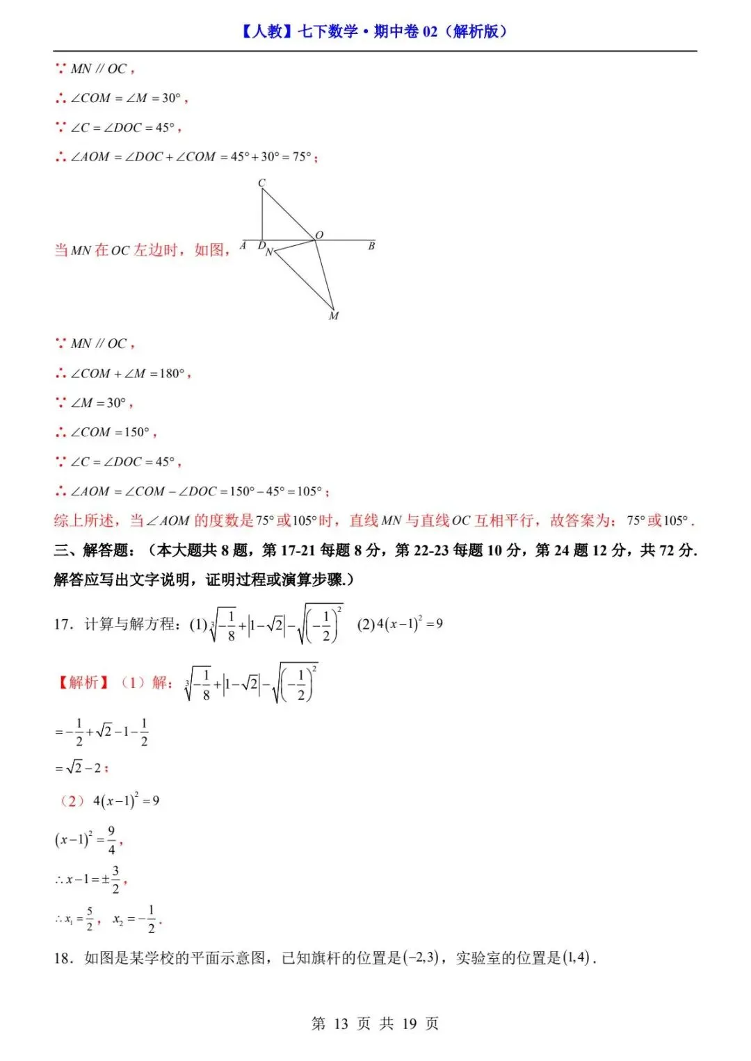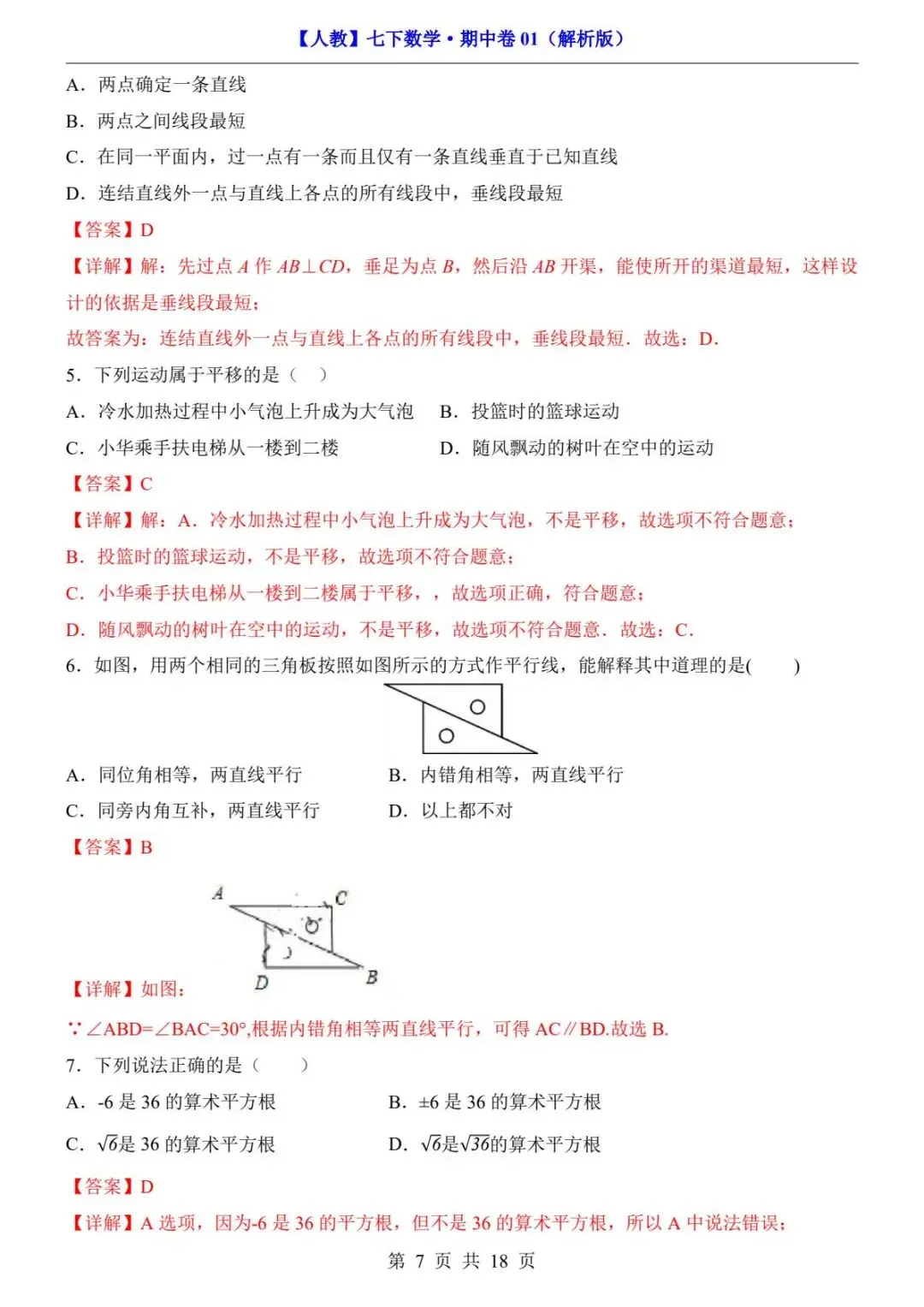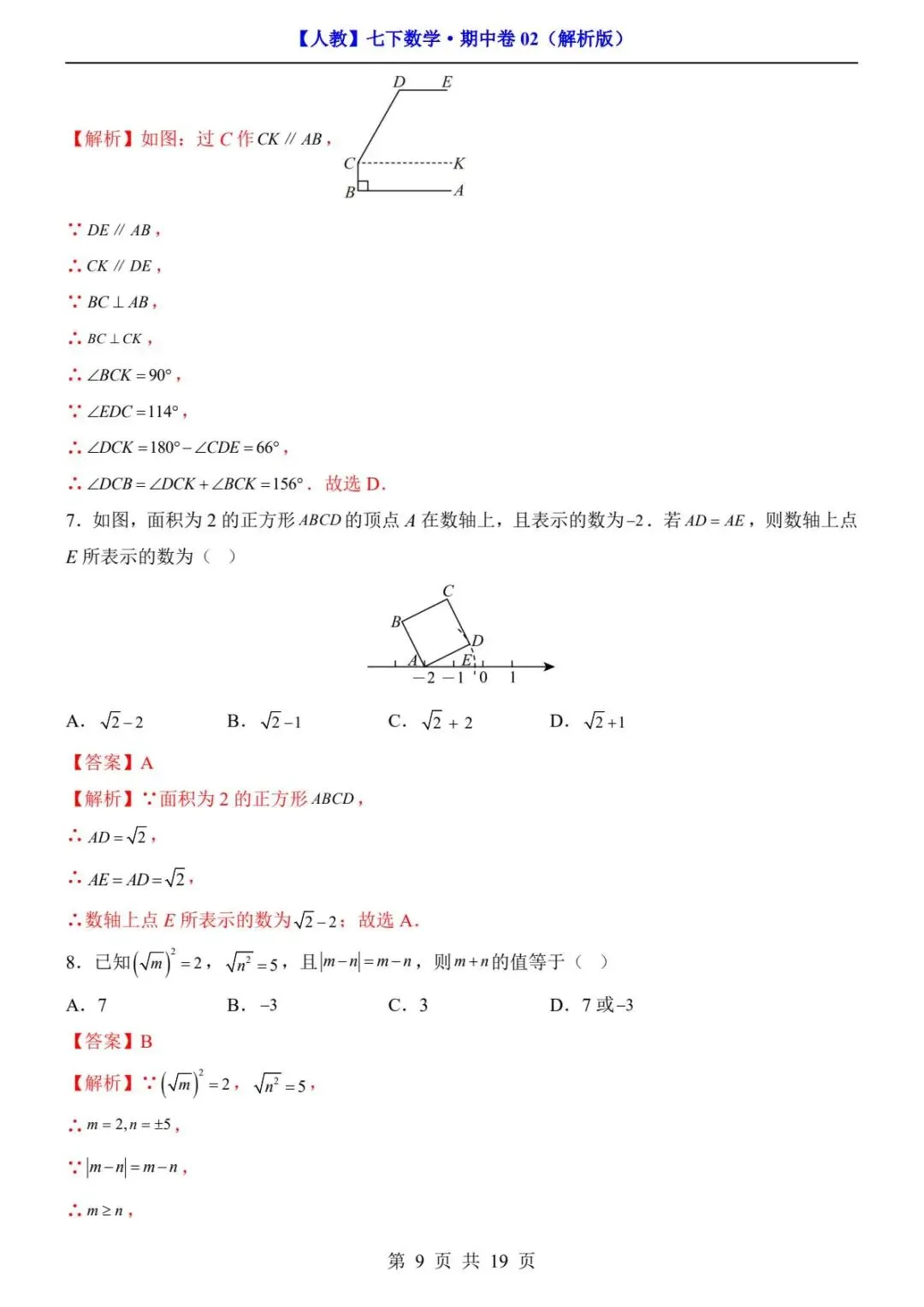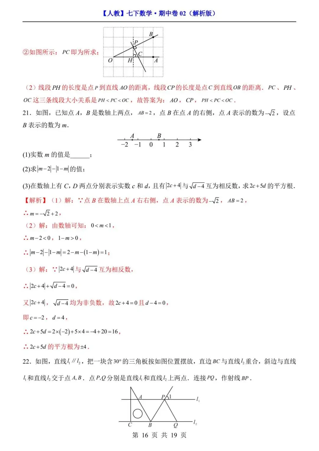 26春人教版七年级下册(数学)期中考试真题测试卷《共2套》+答案解析.高清电子版可打印下载!