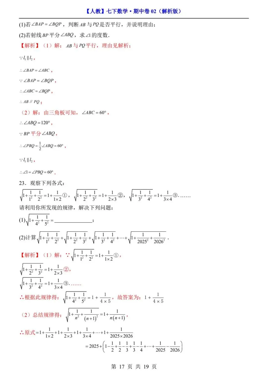 🎉今天分享:26春人教版七年级下册(数学)期中考试真题测试卷《共2套》+答案解析。高清电子版可打印下载!有需要的家长同学抓紧领取一份打印出来🖨️给孩子练一练吧✍欢迎转发分享到班群或朋友圈,助力更多孩子高效学习。