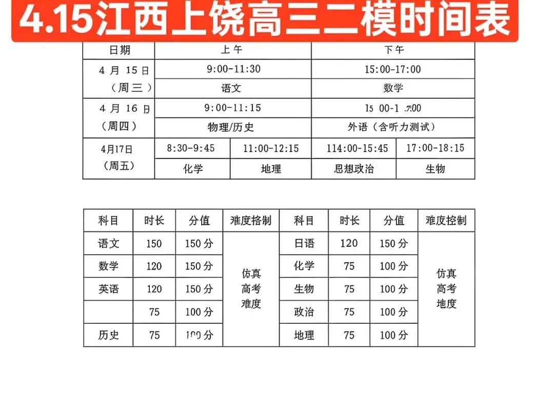 考试名称:上饶二模上饶市2026届高三年级第二次高考模拟考试