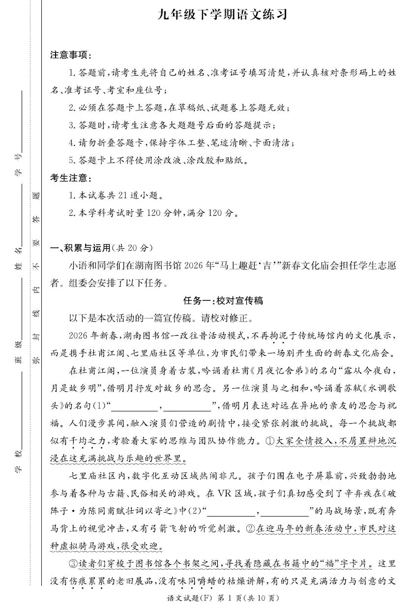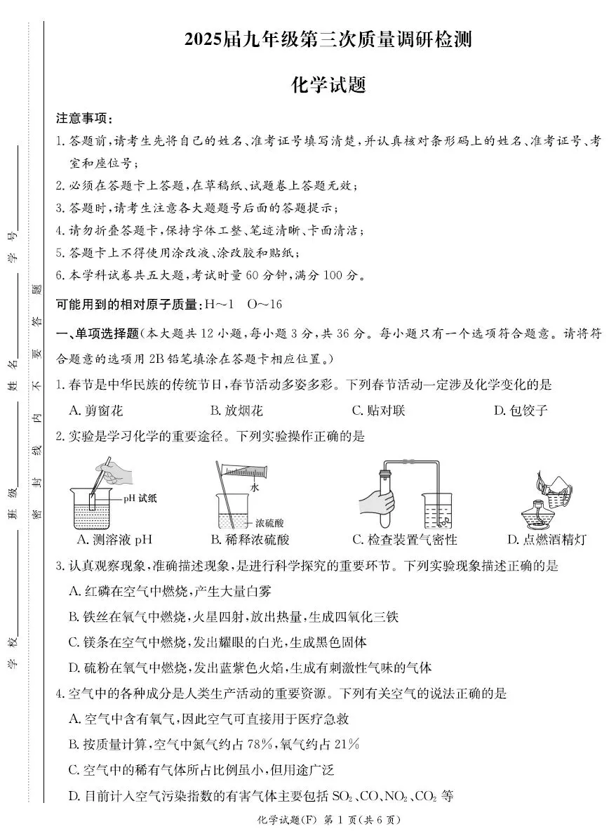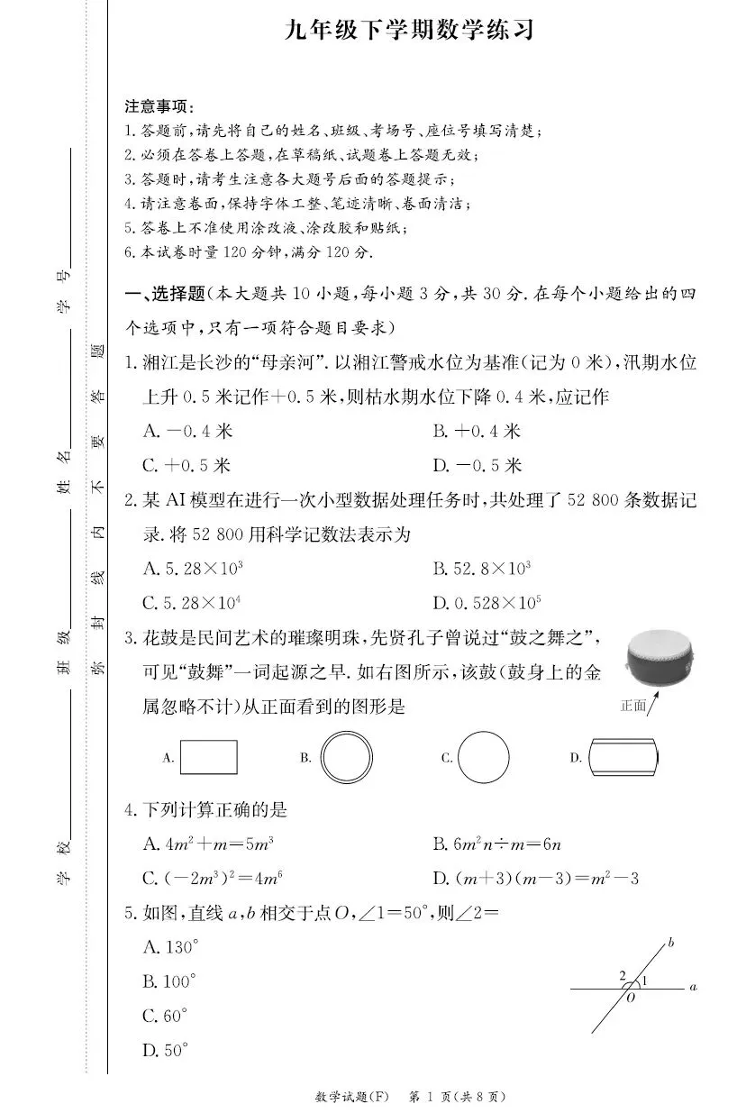 2025届+2026届湖南师大附中教育集团初三一模试卷及答案