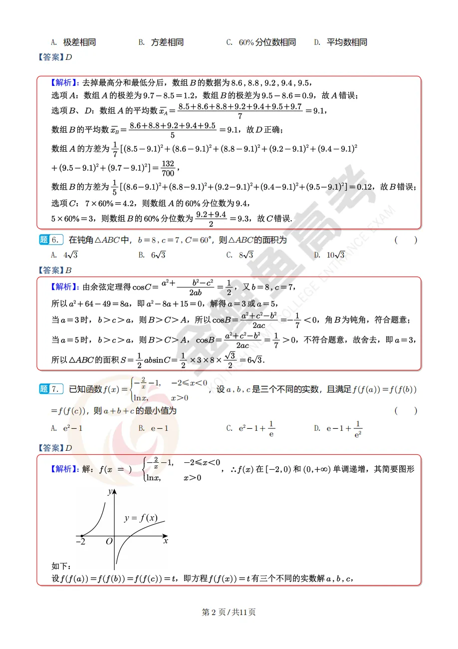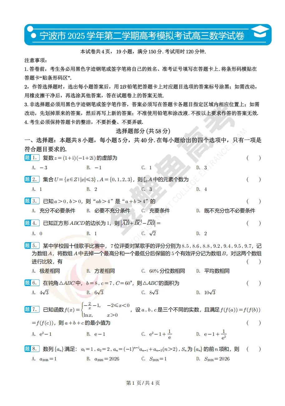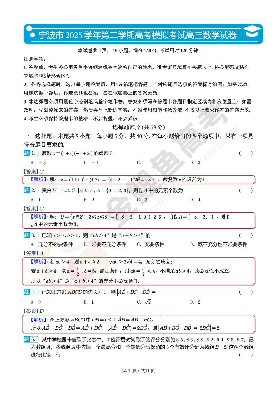 逐题解析!浙江宁波市二模高三数学试卷及解析(点击下载)