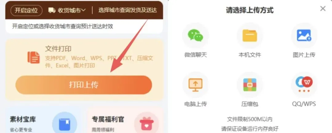 大家把需要打印的文件上传到程序,不用修改格式,稍后直接设置打印参数。