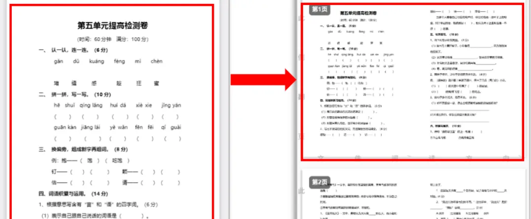 这样打印出来就是我们想要的试卷格式,直接下单,坐等送货上门。