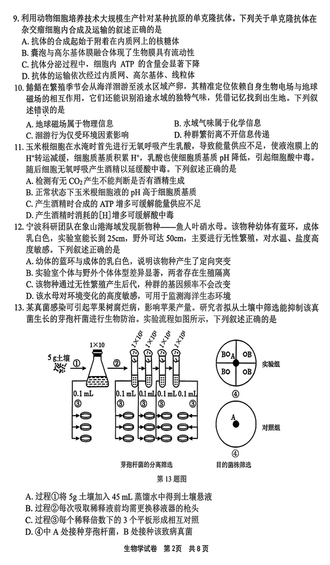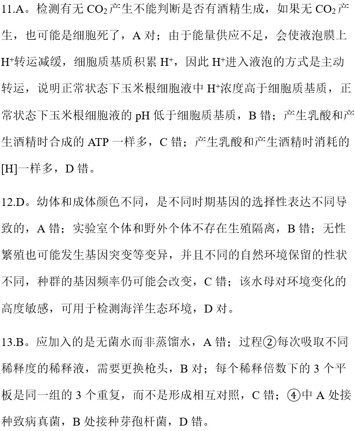 10.C。洄游行为除了受环境因素影响,还受遗传因素影响,C错。