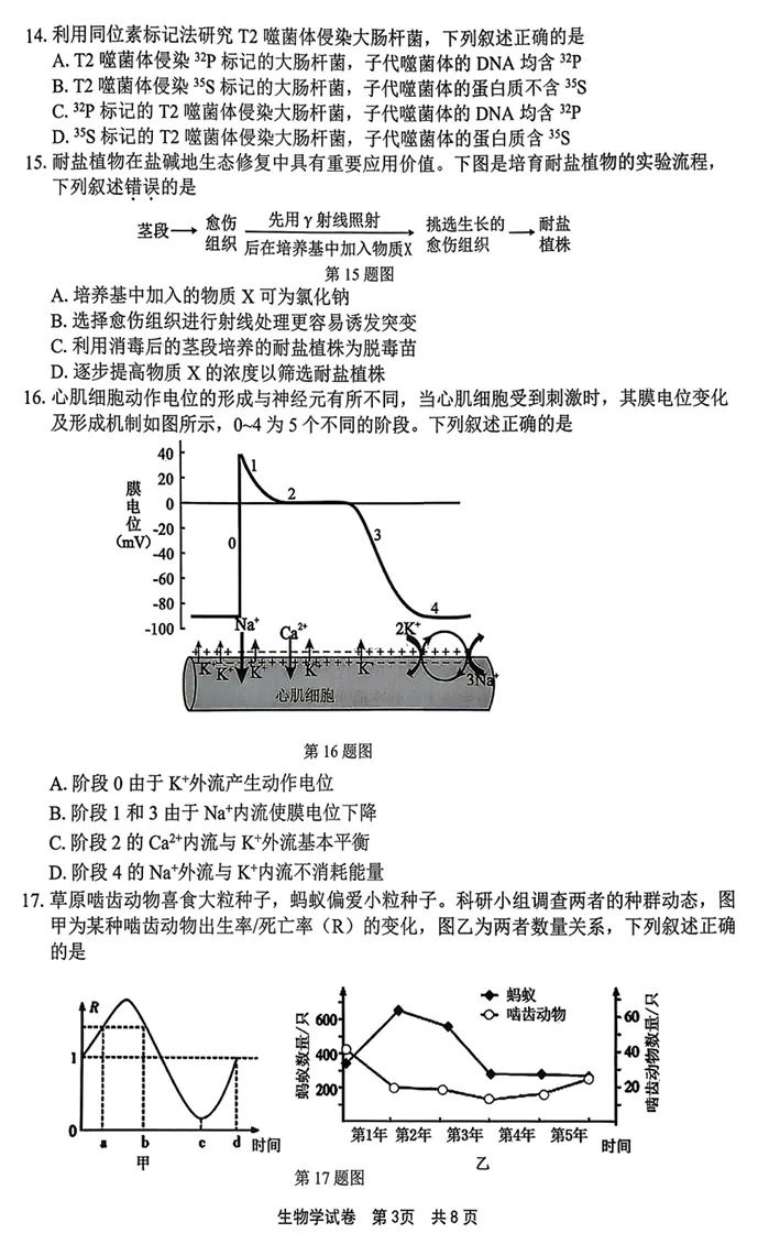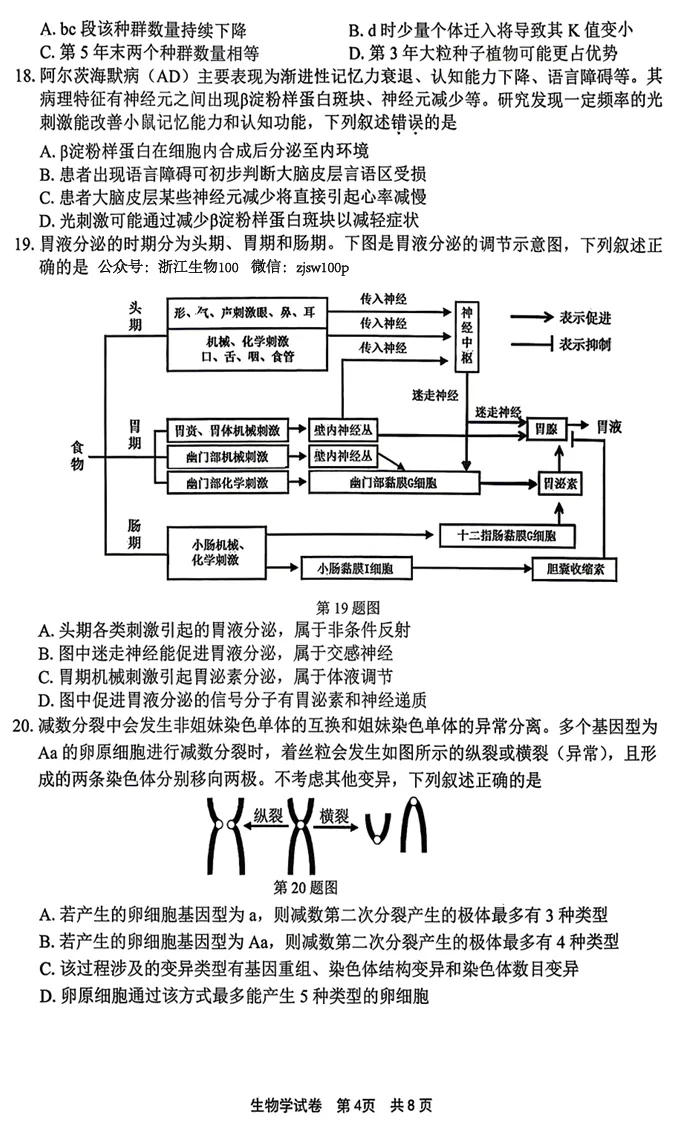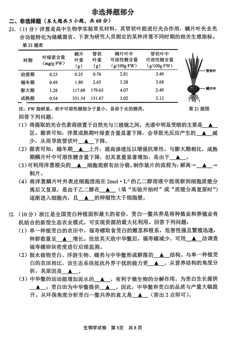 2026年4月浙江绍兴二模高三生物试卷、答案和解析