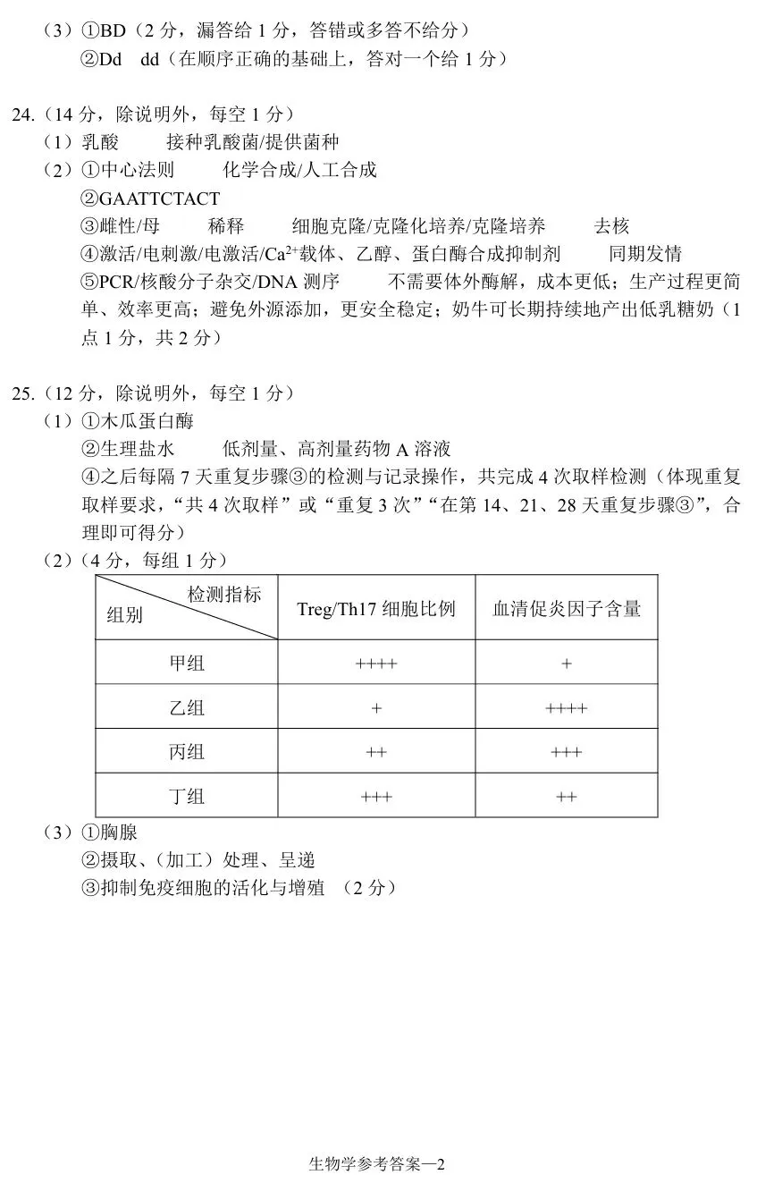 2026年4月浙江台州二模高三生物试卷、答案和解析(基础分多)