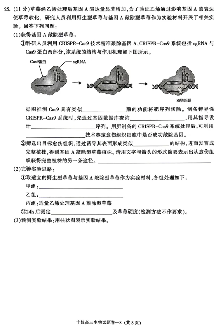 2026年4月嘉兴模拟高三生物试卷、答案和解析(题目新颖!)