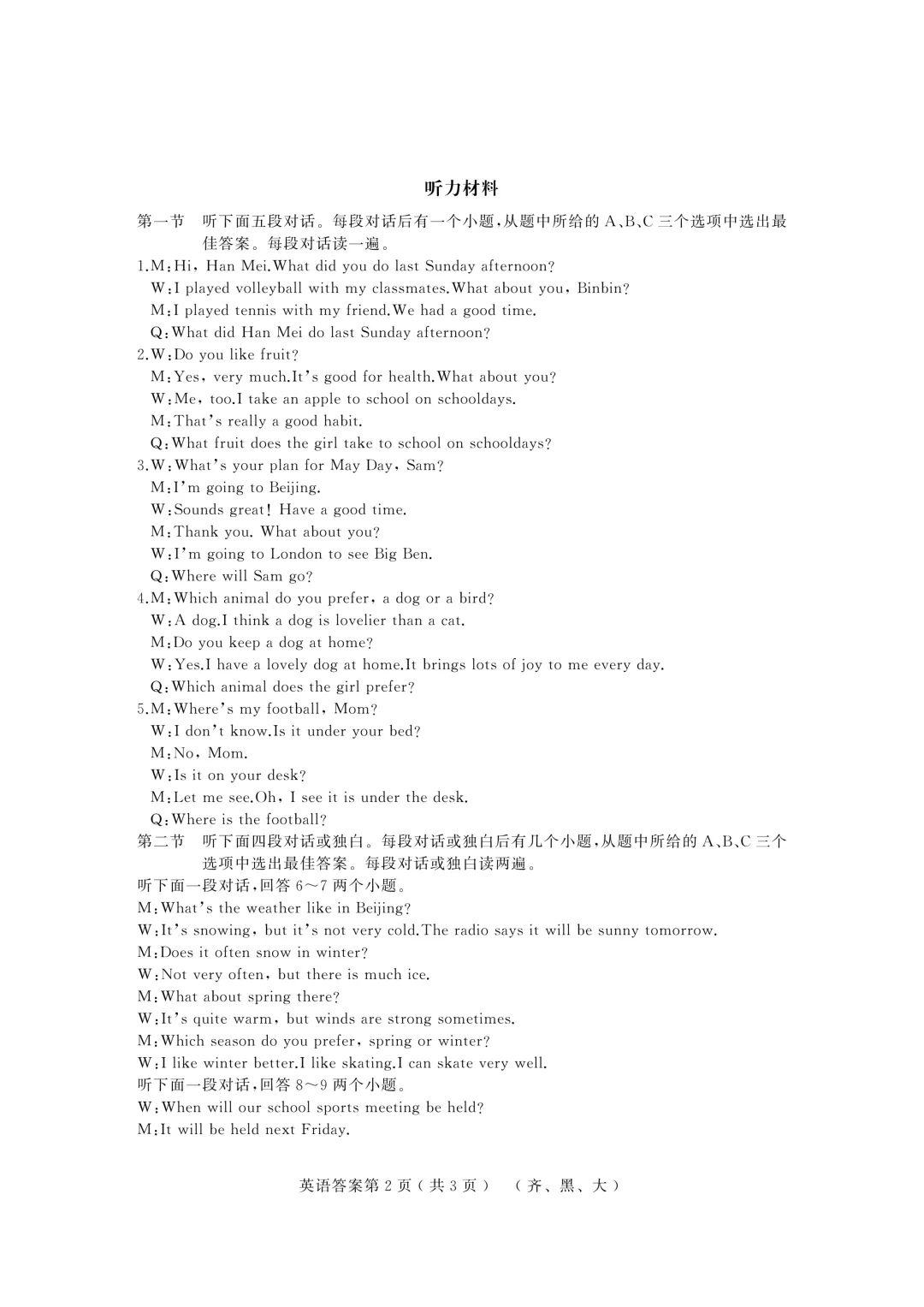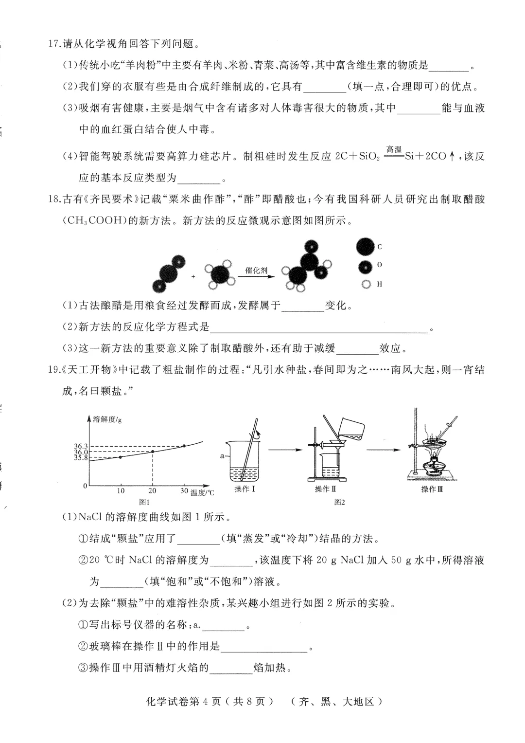 >2026年齐黑大地区中考适应性训练七科试卷及参考答案