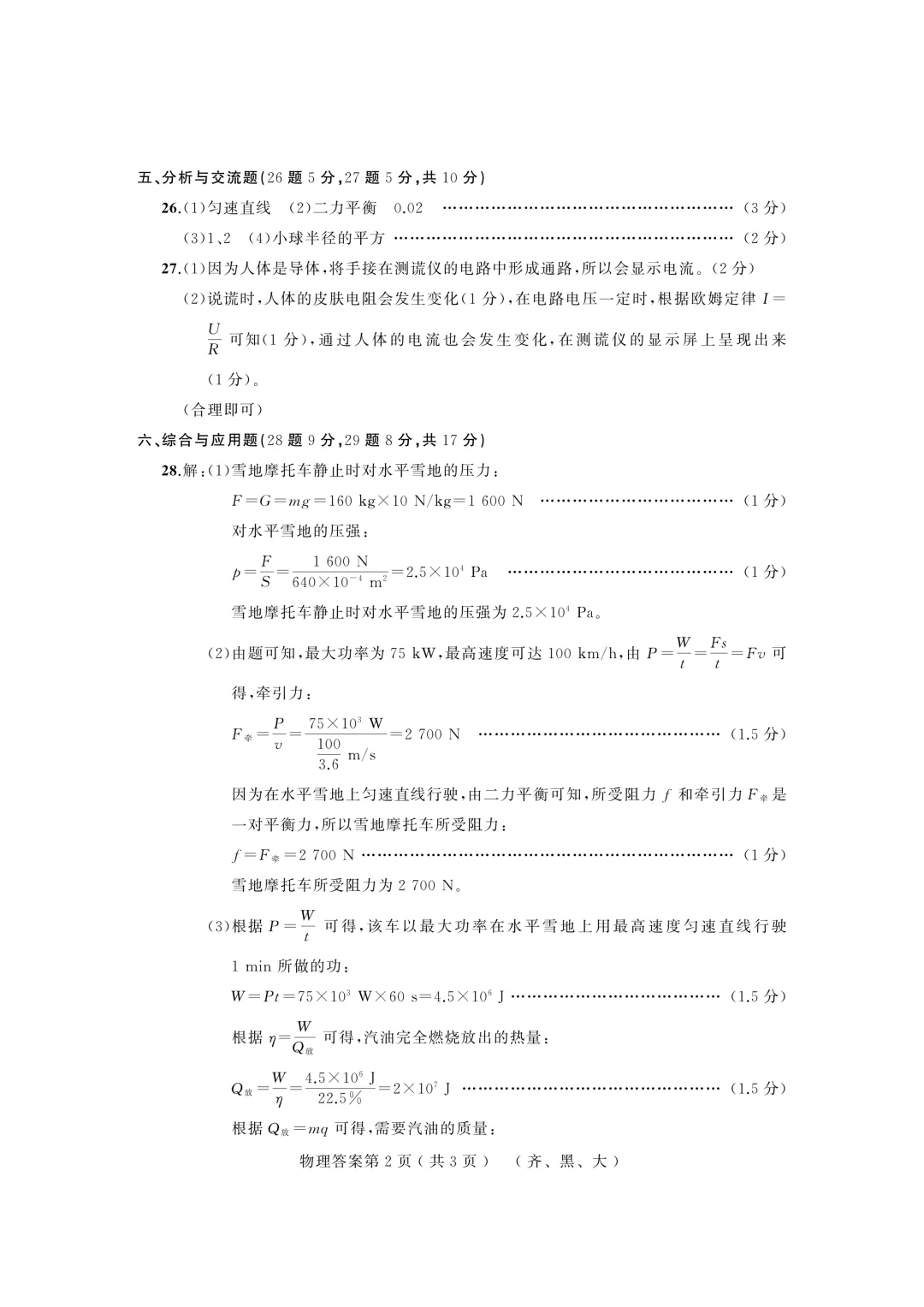 榆林三模物理试卷全科汇总!