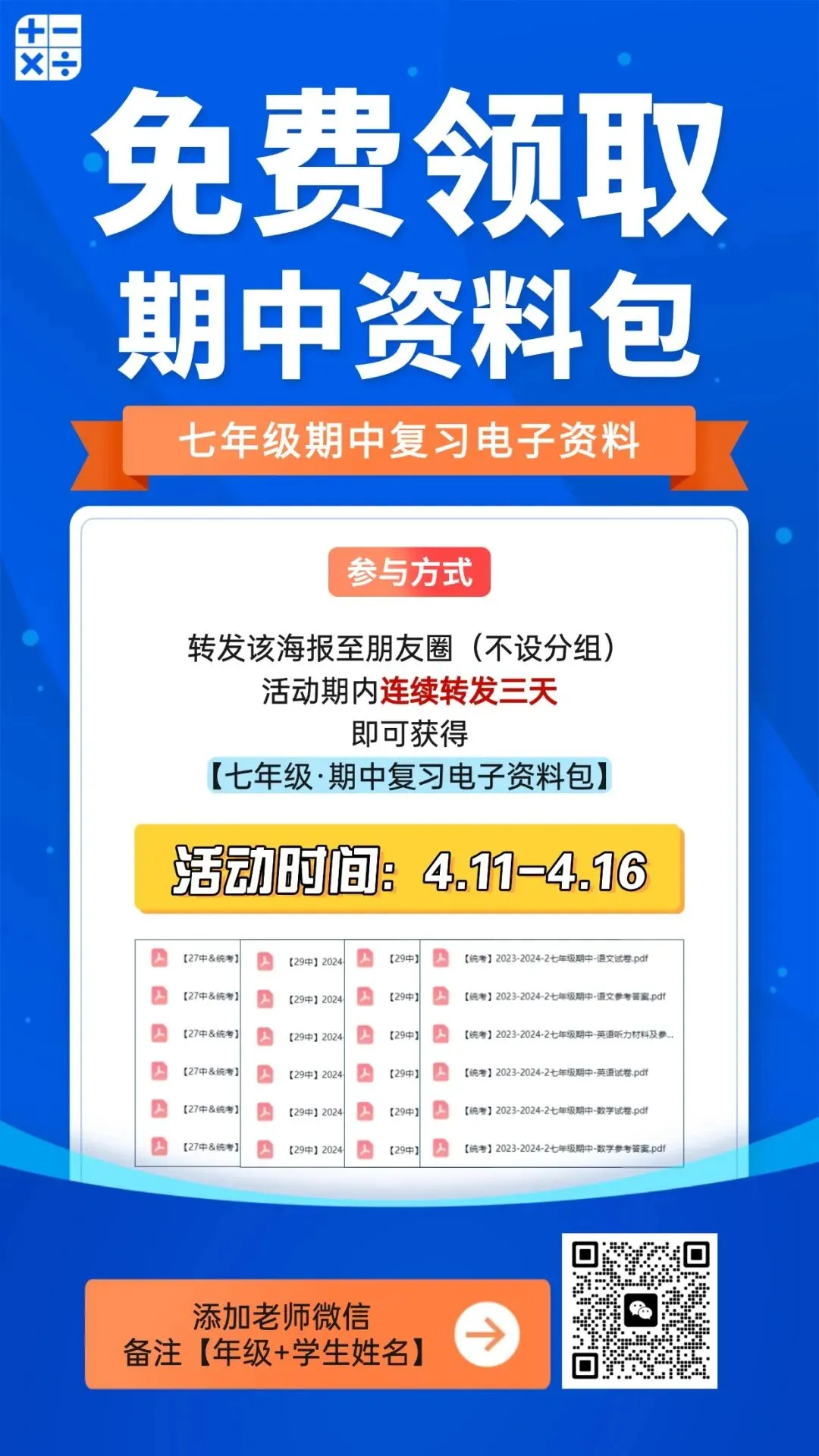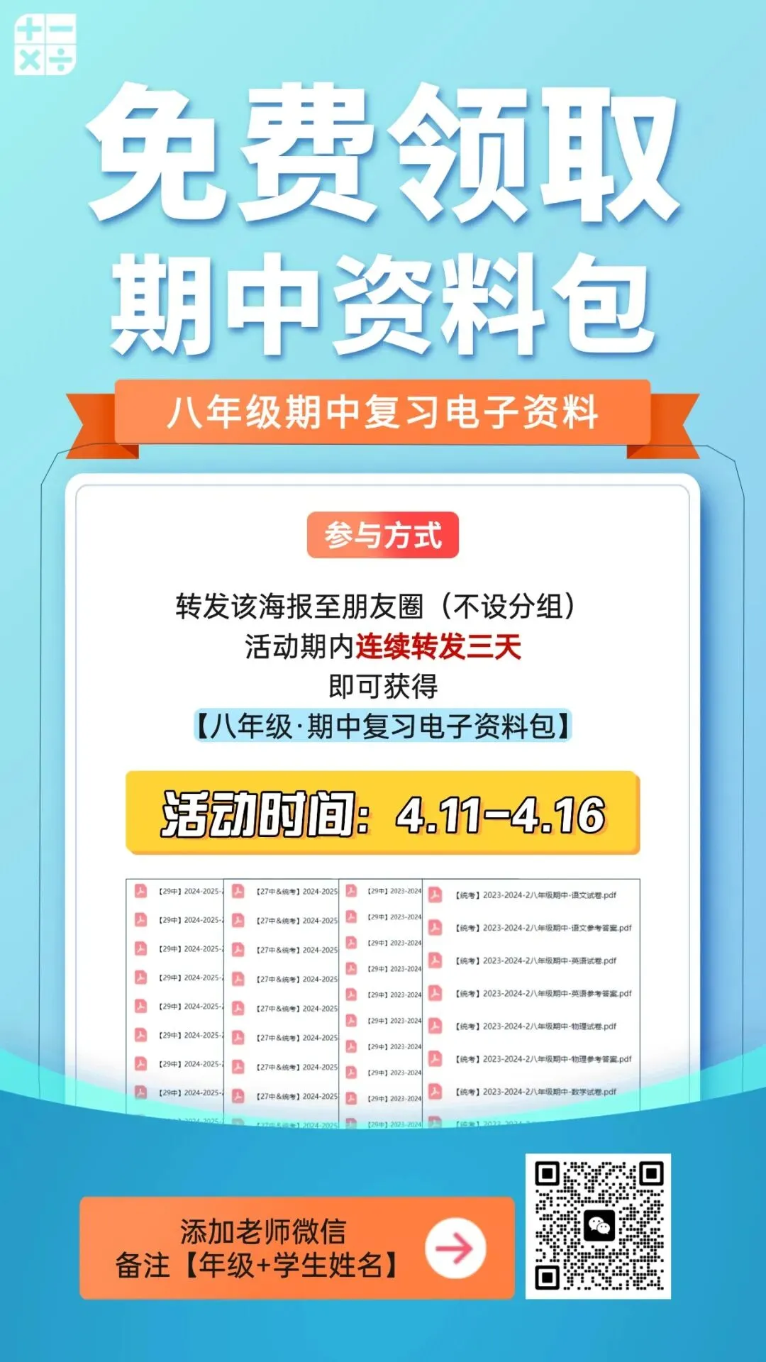 ②添加小初老师,发送朋友圈截图及学生年级+姓名,即可免费领取最新年份期中真题+全科知识点汇总。