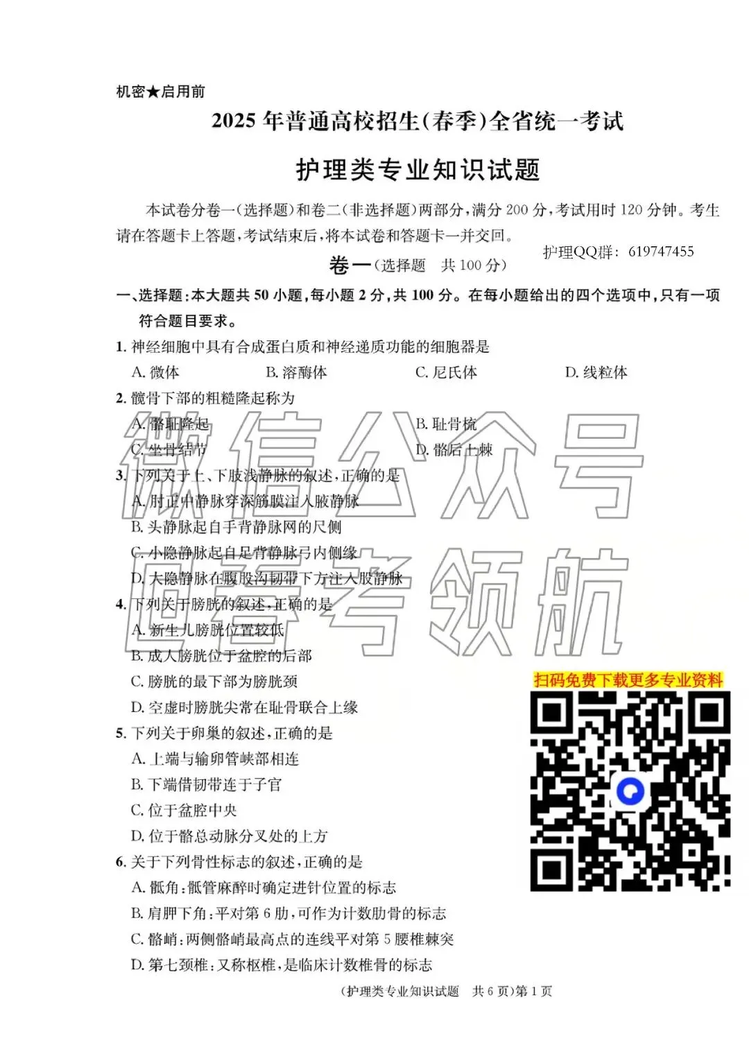 更多春考试题及真题,扫码下载👇