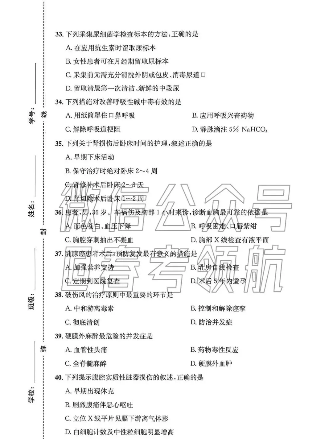 >【最新】25年春考护理考试真题(含答案)