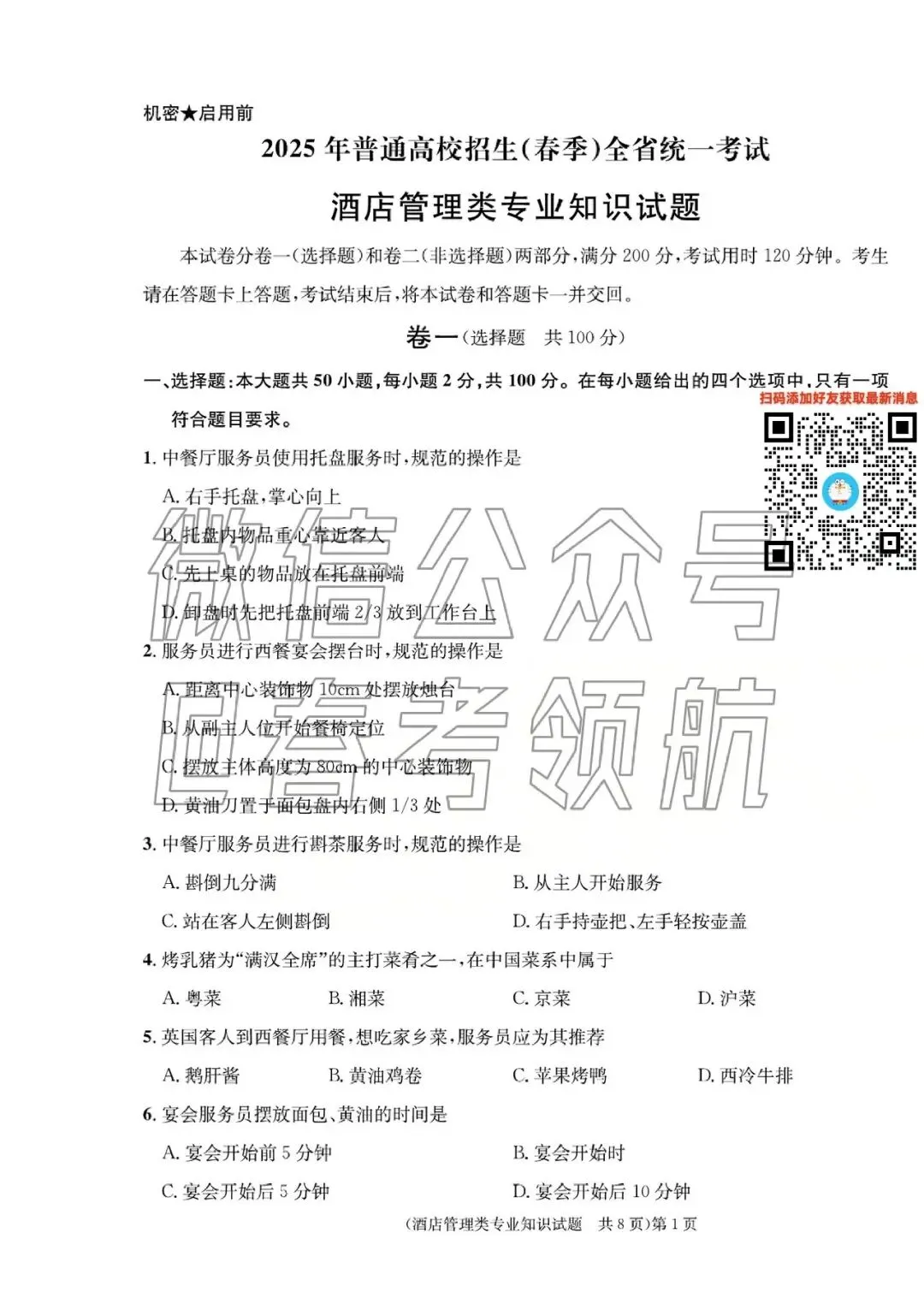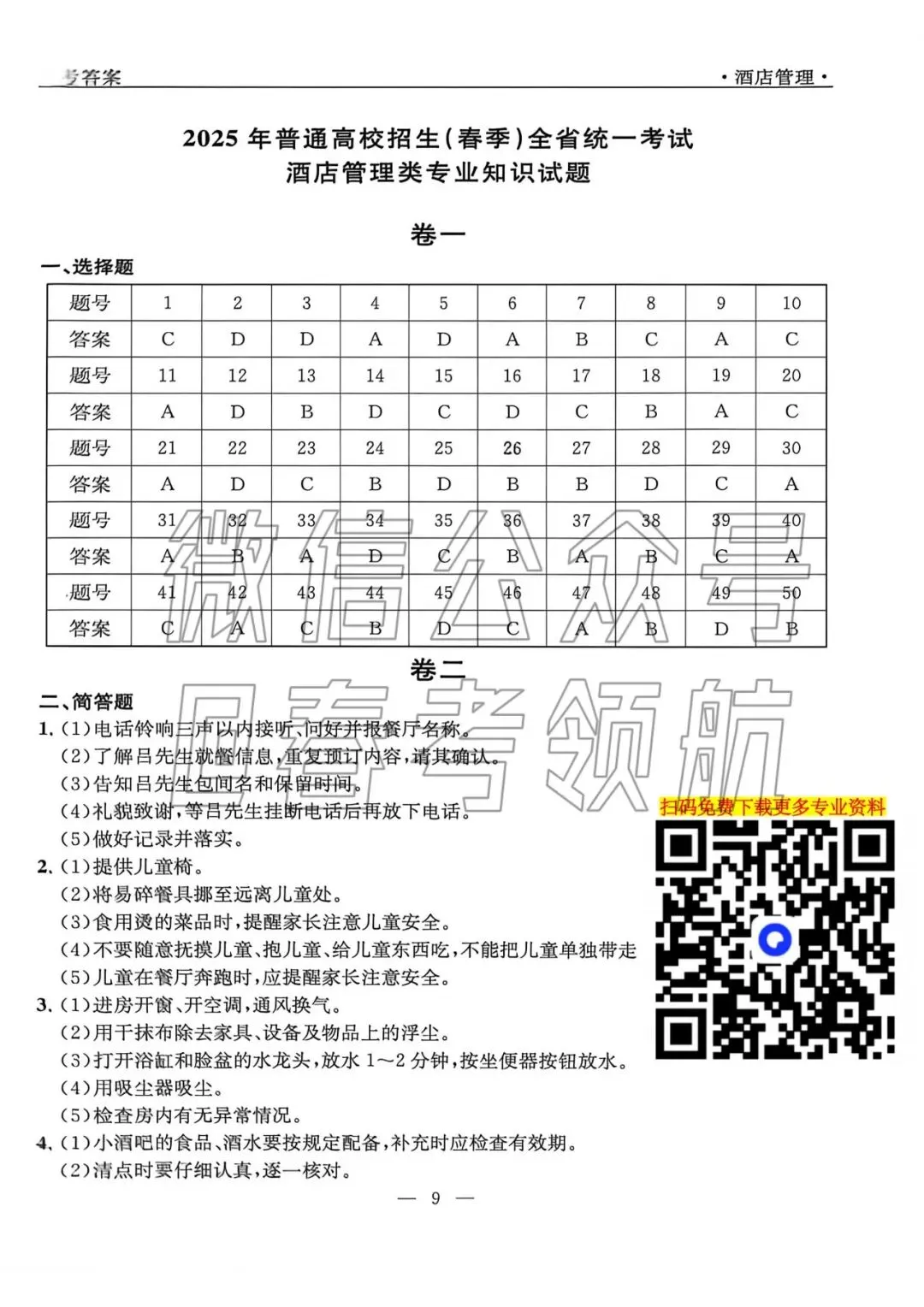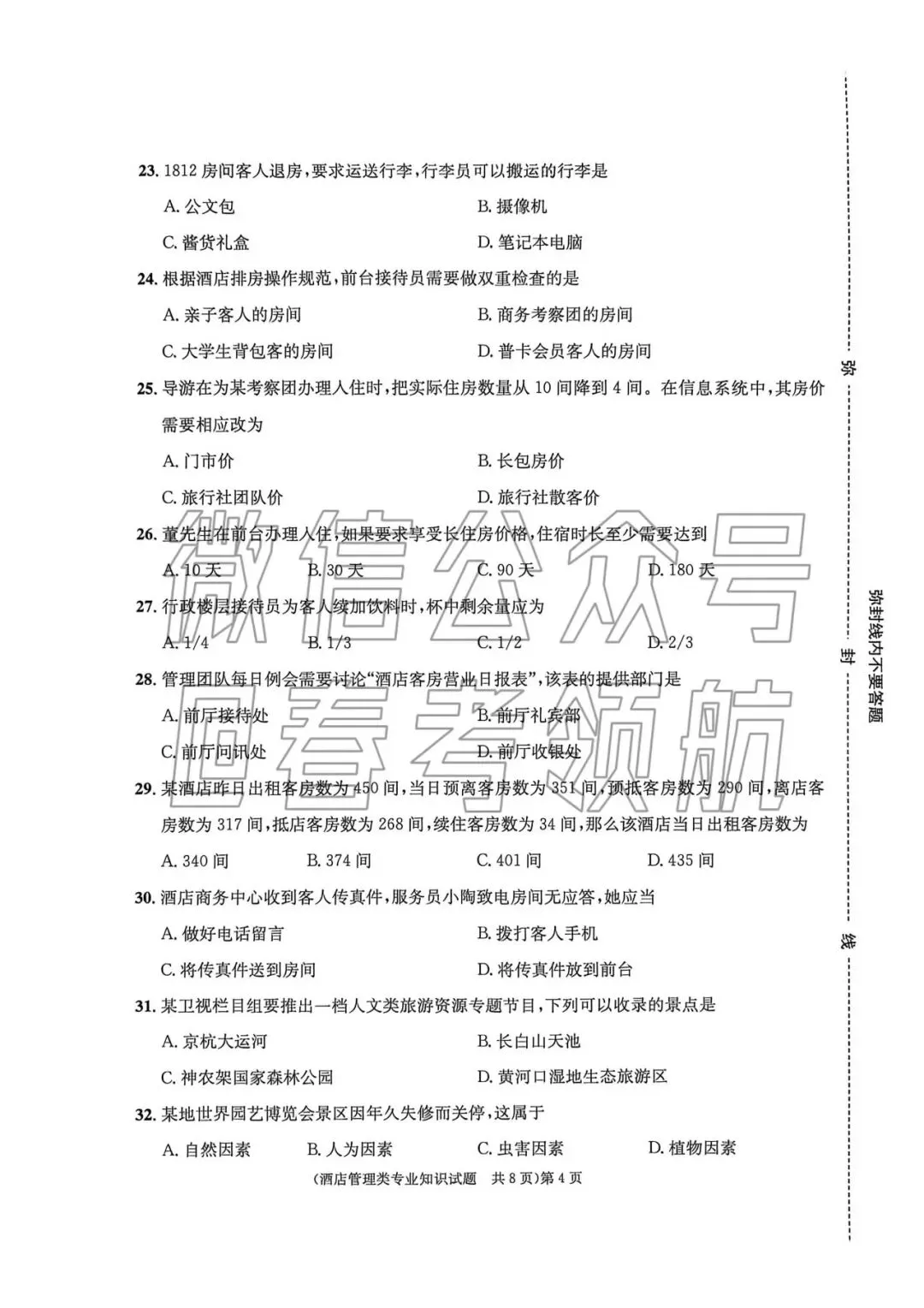 因政策限制,后续发布的春考真题隐藏少量内容,春考30个大类专业试题持续发布,持续关注春考领航公众号即可。