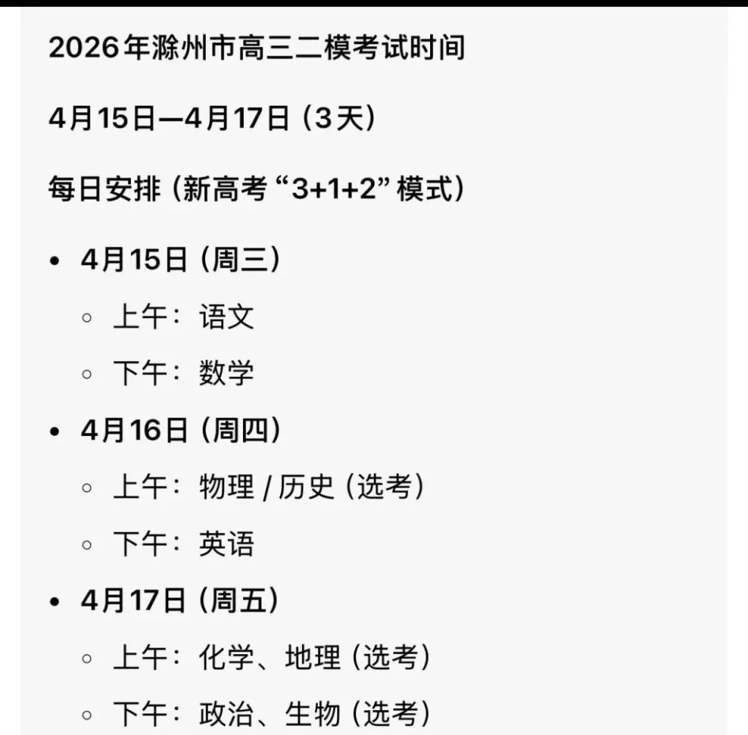 【试卷+解析】滁州二模2026年滁州市高三第二次教学质量监测全科试卷汇总!