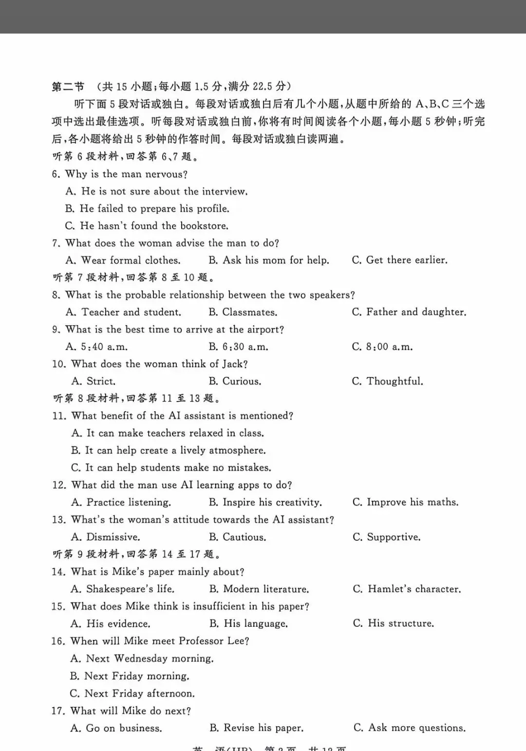 考试名称:广东佛山二模