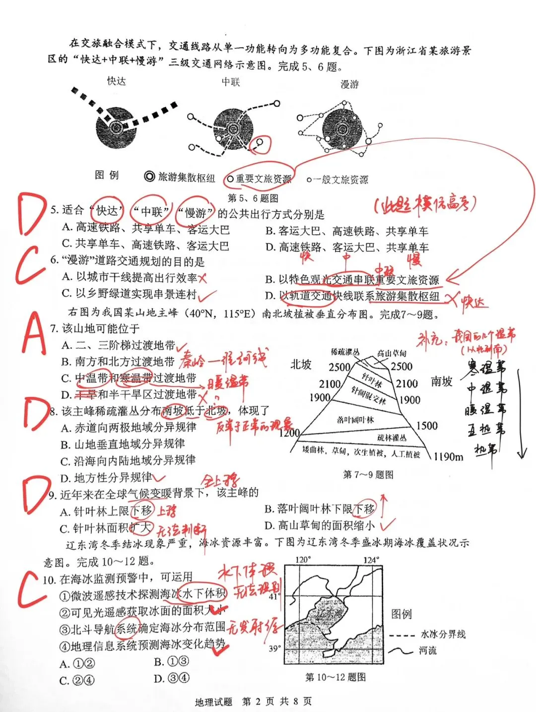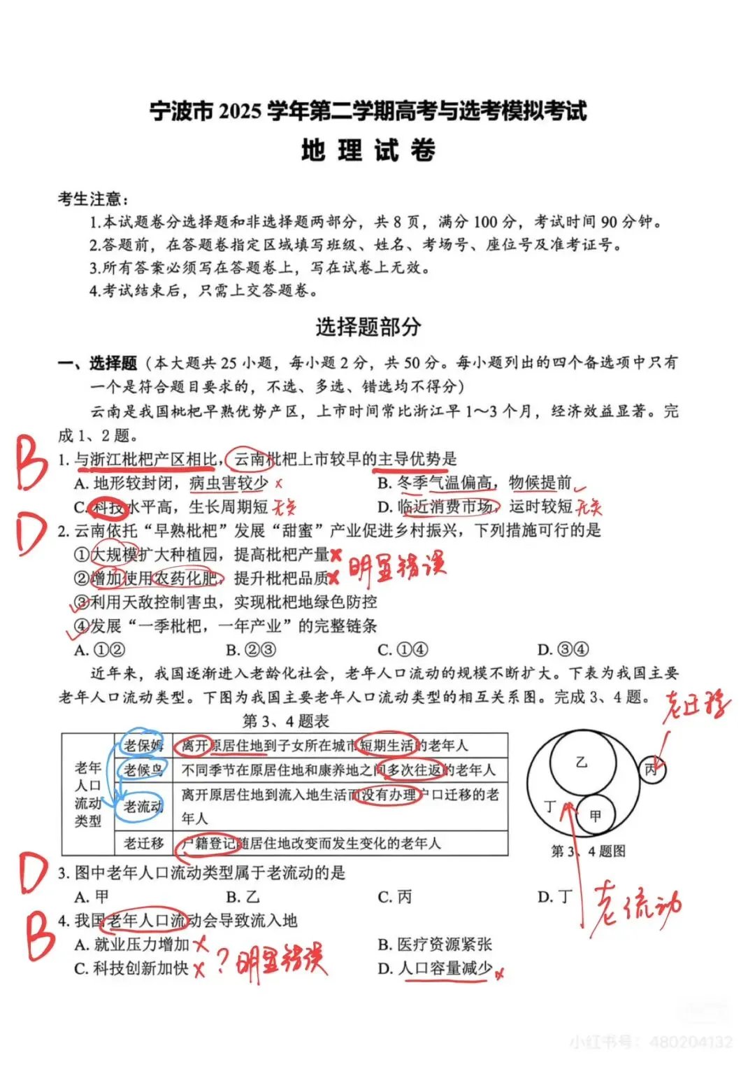 >2026年4月宁波二模(舟山二模)地理试卷选择题详解