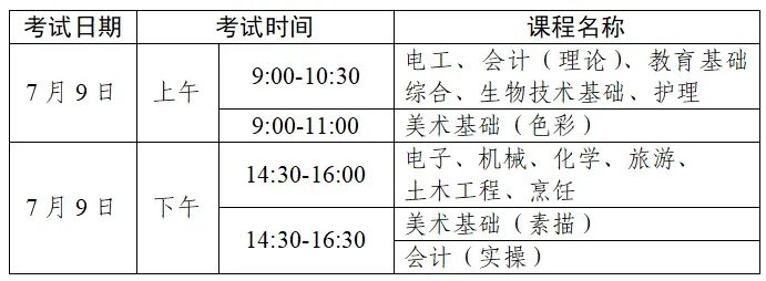 2.其他课程类别操作技能考试由各市招生考试机构根据实际情况在6月27日至7月12日内完成。各门课程操作技能考试工种类别代码及考试时间详见附件1。