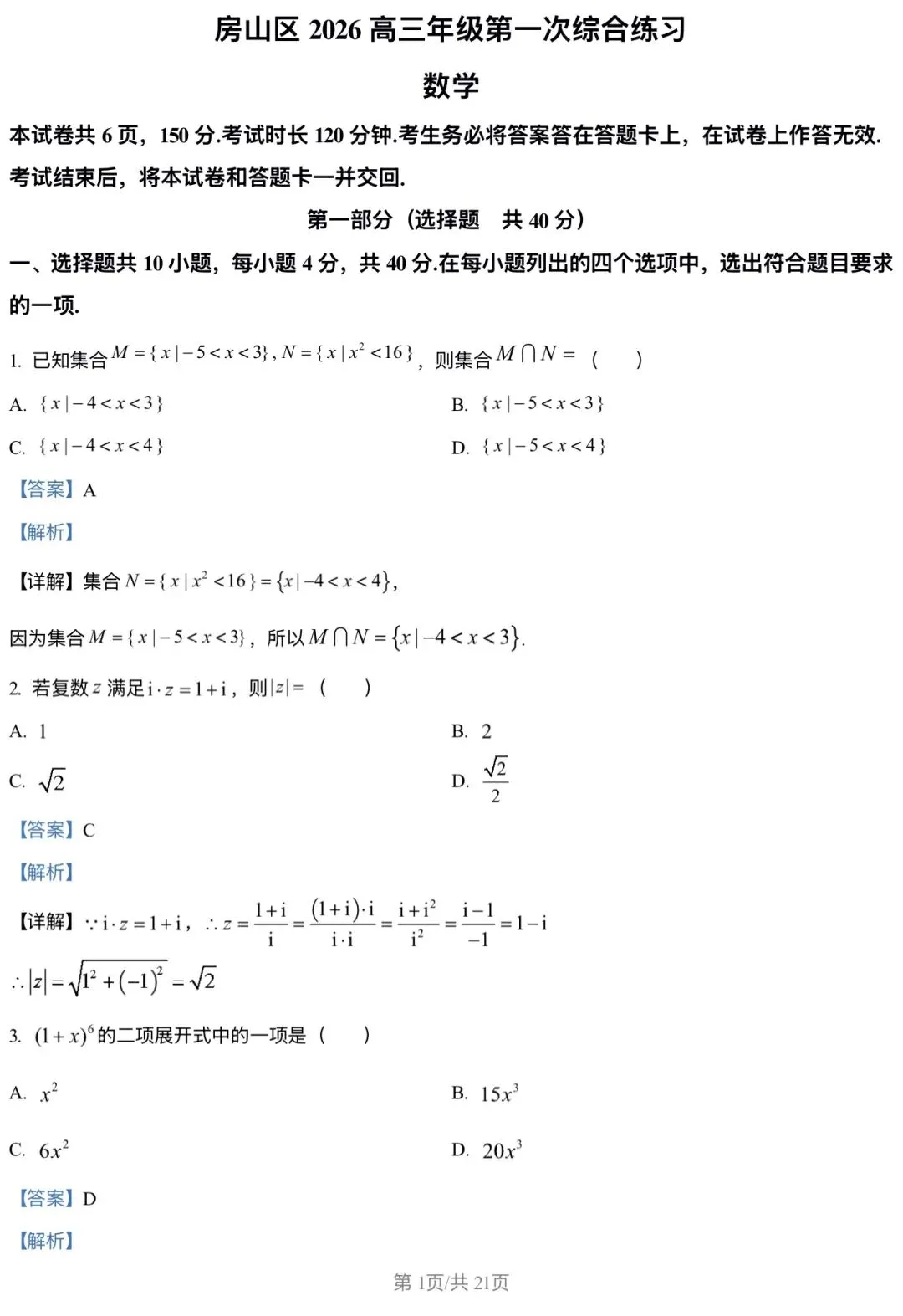 西安名校数学 | 2026TYZ三模试卷(含答案)可打印