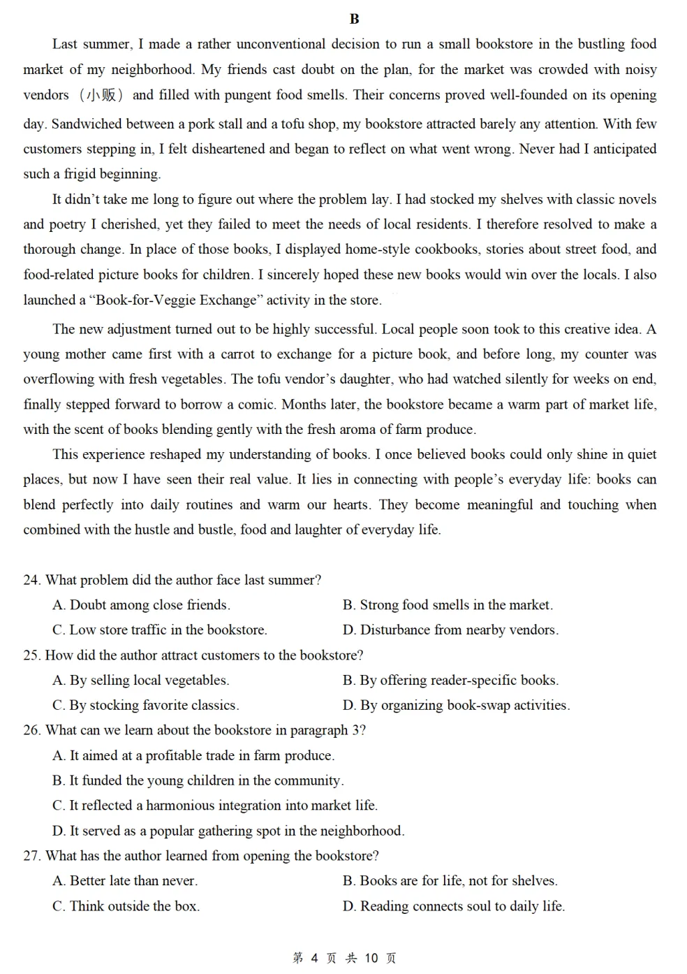 一模真题-2026山东聊城市茌平区中考一模英语试卷真题(完整版 + 答案)