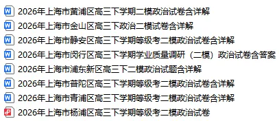 2026年4月11日晚上好,有几天没分享了,2026上海高三二模,本周又有徐汇,宝山,杨浦,闵行,黄浦,崇明,嘉定七区开考,所以,一共是14区,除了长宁和虹口要到下周考。老师分享目前已经收集到的政治二模卷,刷题季进入了最后的冲刺阶段了。另外李老师针对政治论述题的最后冲刺复习有做专题总结,不要错过哟。最后的20天,需要给特别给大家强调的是,这个时候,不管对于你现有水平来说,是准备拿B,拿B+,拿A,或是A+,冲分的关键是一样的:就是你的复习思路一定要足够清晰。就是你每天在做什么,你到底还有哪些问题,你自己得定一个非常细的计划,针对每一科,就是要每天都有一个时间节点的概念,你不能像无头苍蝇一样,否则这20天刷一下就会过去了。