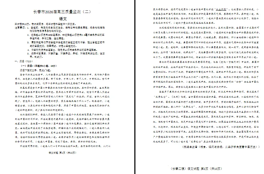 【无水印试卷】吉林省长春市2026届高三质量监测(二)