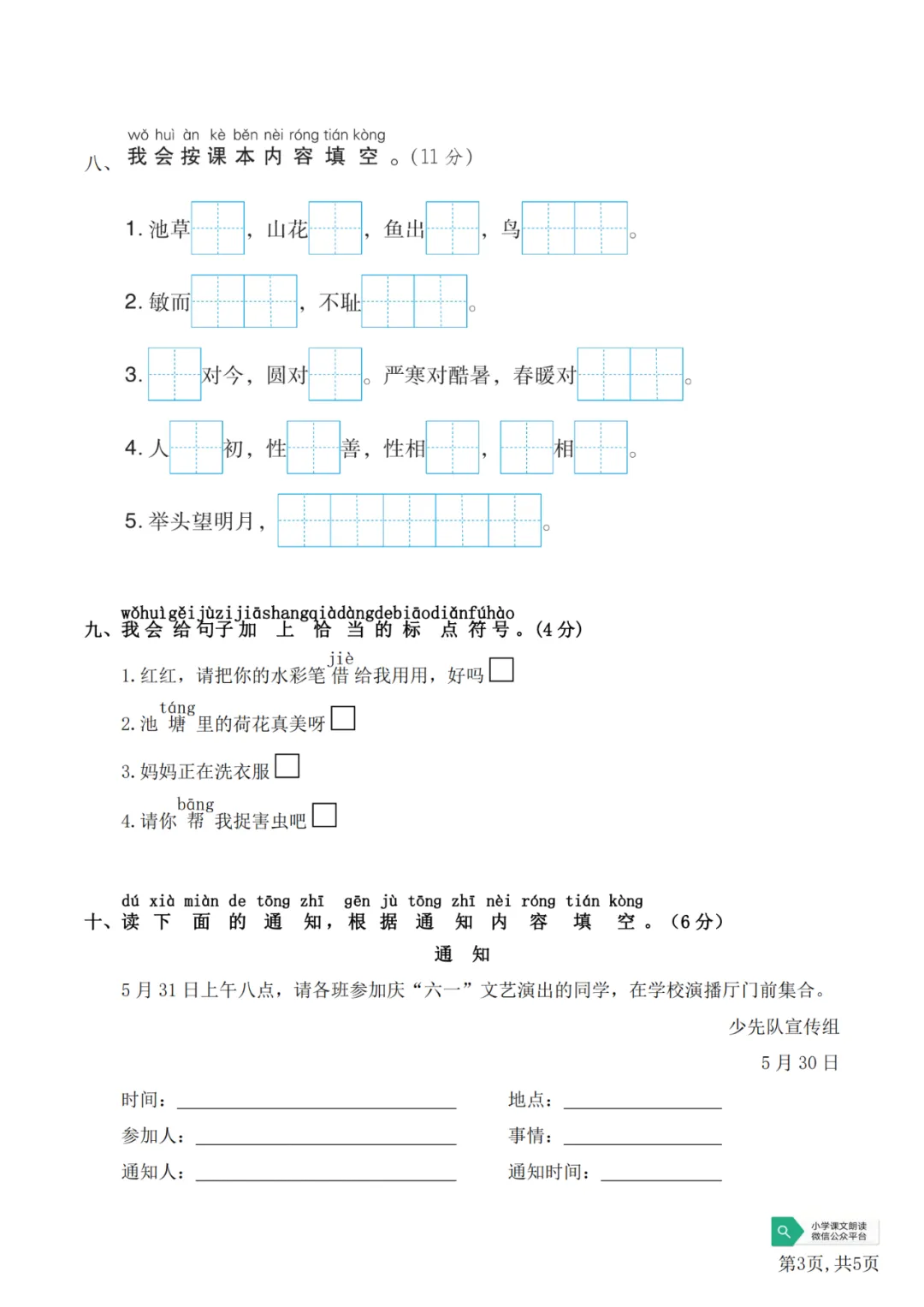 2026五年级语文下册《期中试卷真题》训练题带答案