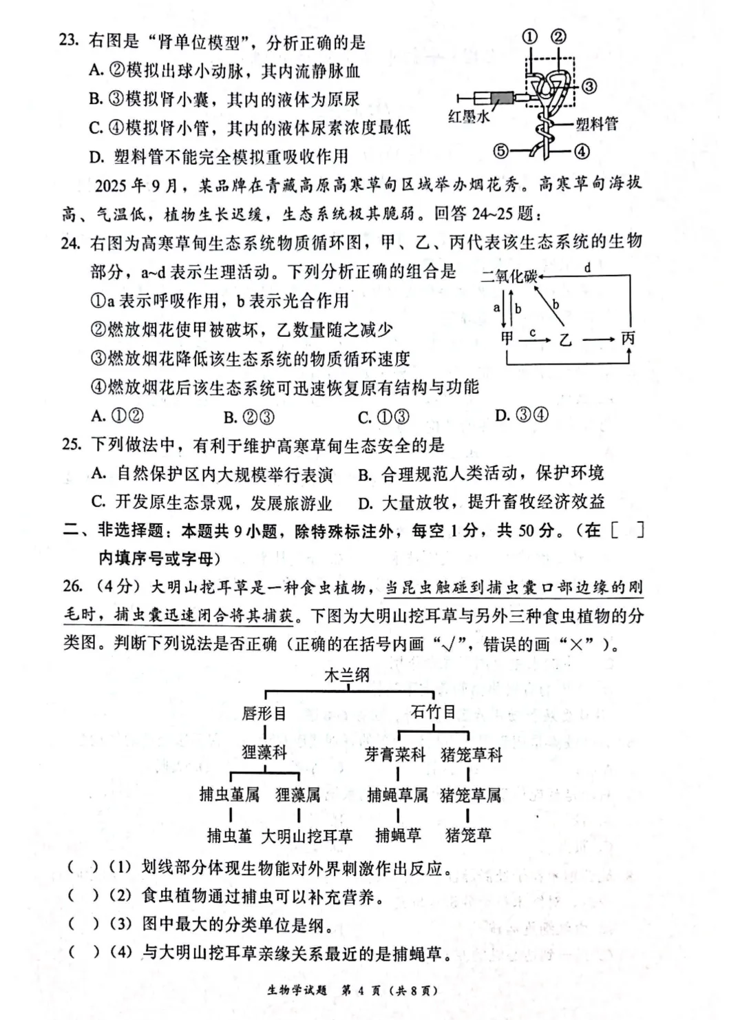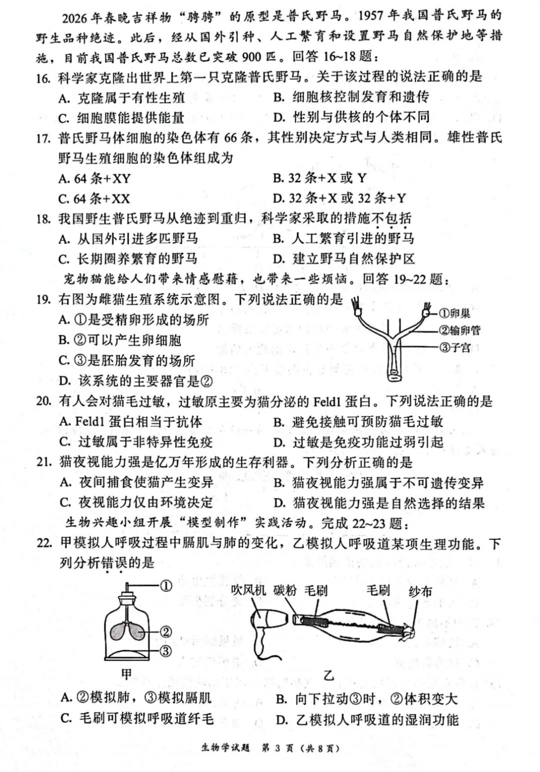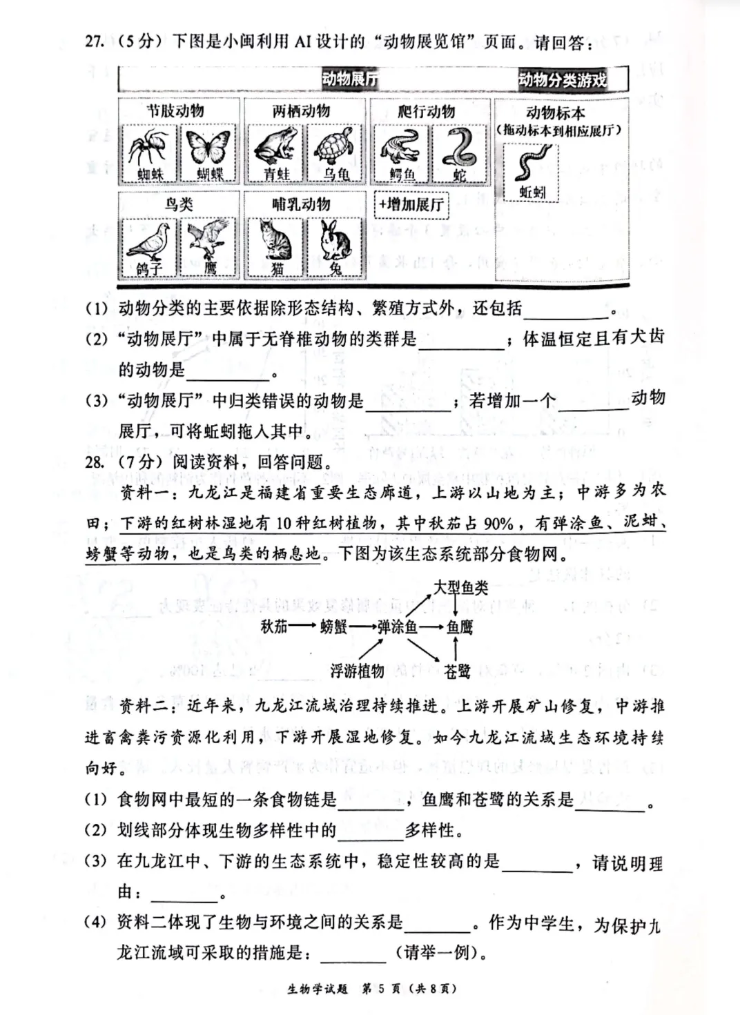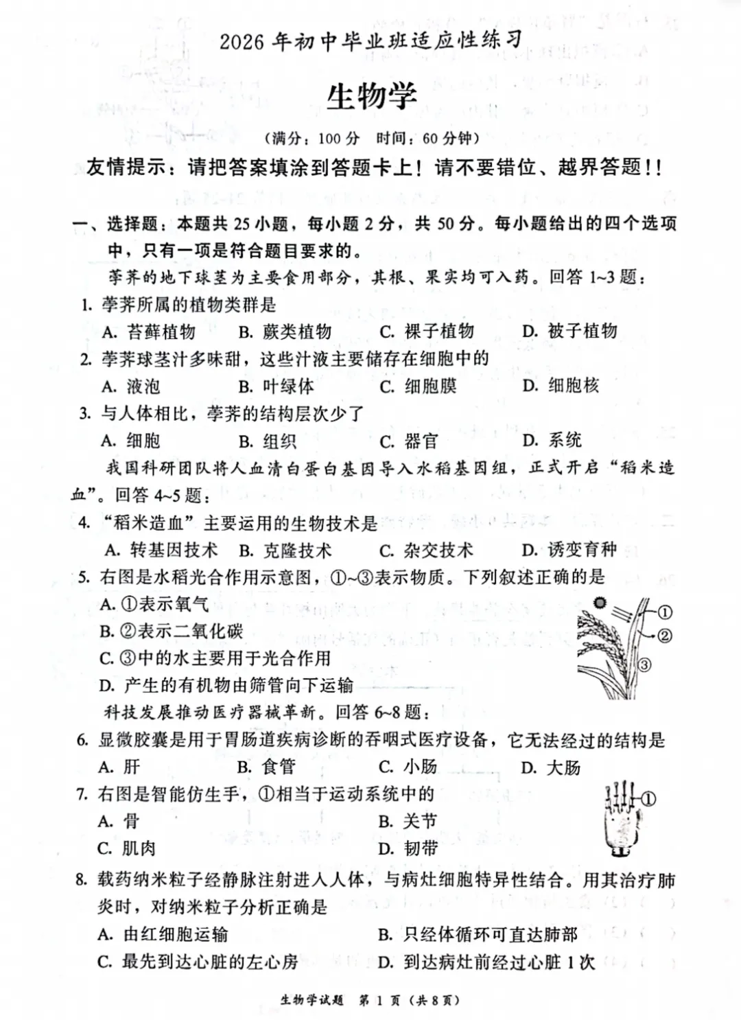 >【试卷分享】福建漳州市2026年初中毕业班适应性练习生物学
