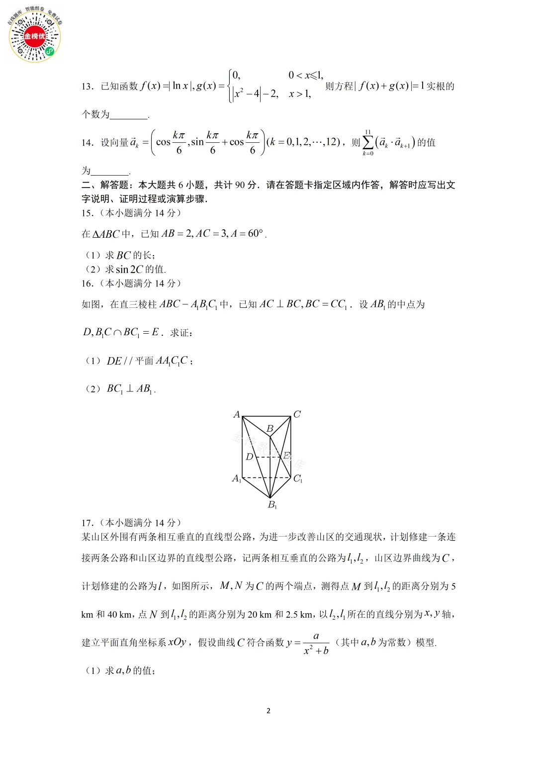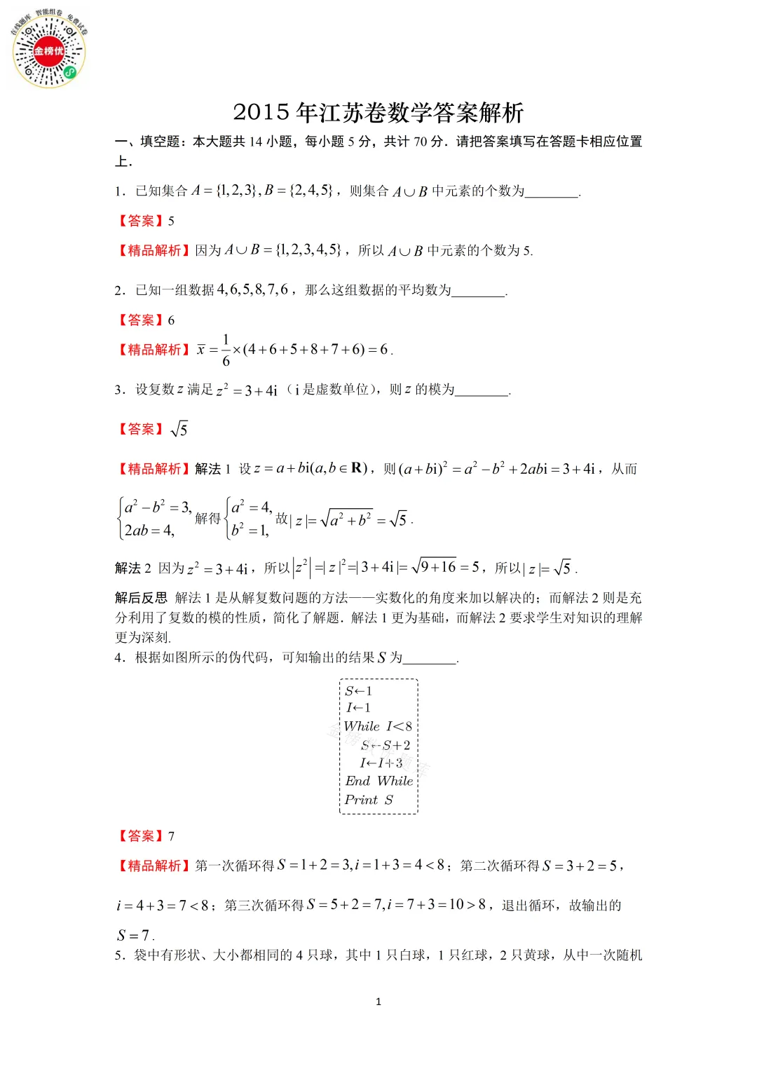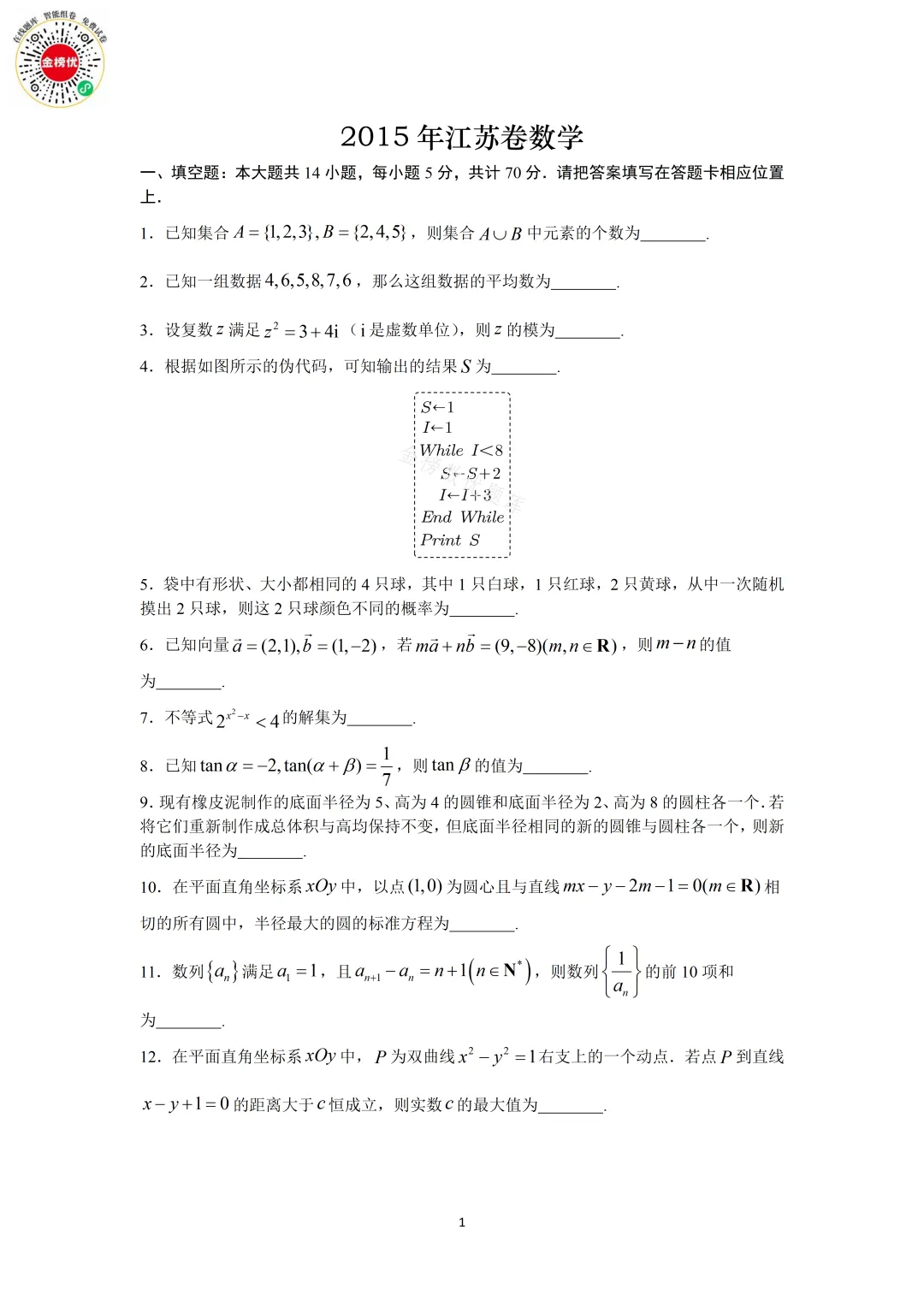 >【高考数学真题】2015年江苏卷数学试卷+答案