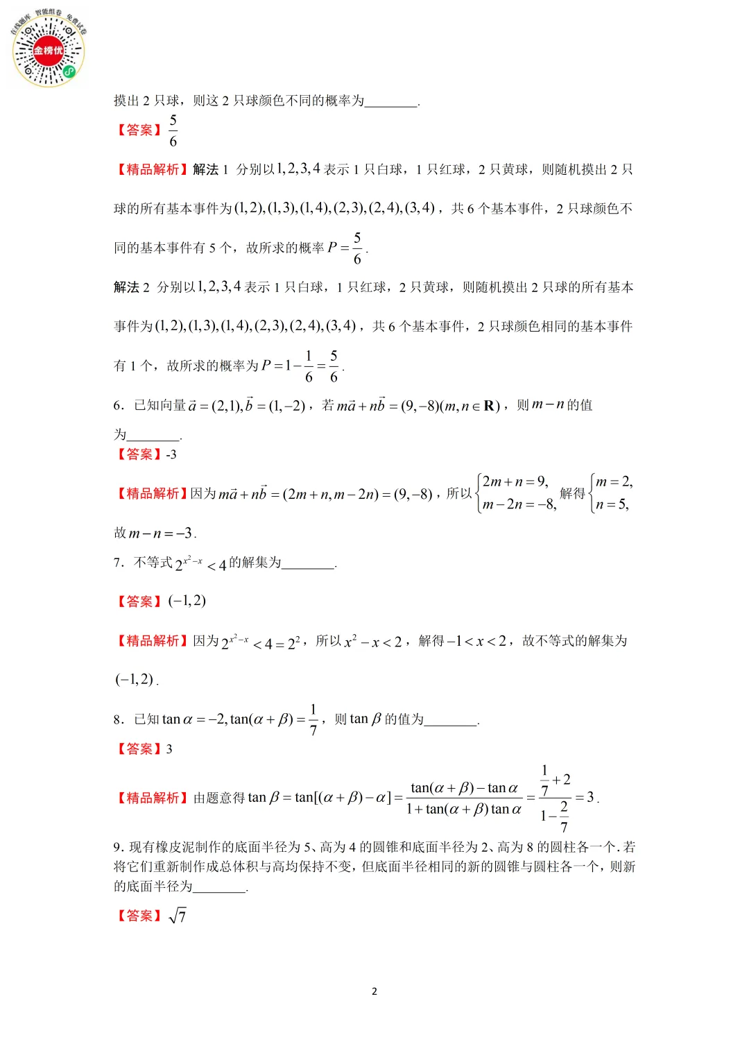 【高考数学真题】2012年江苏卷数学试卷+答案