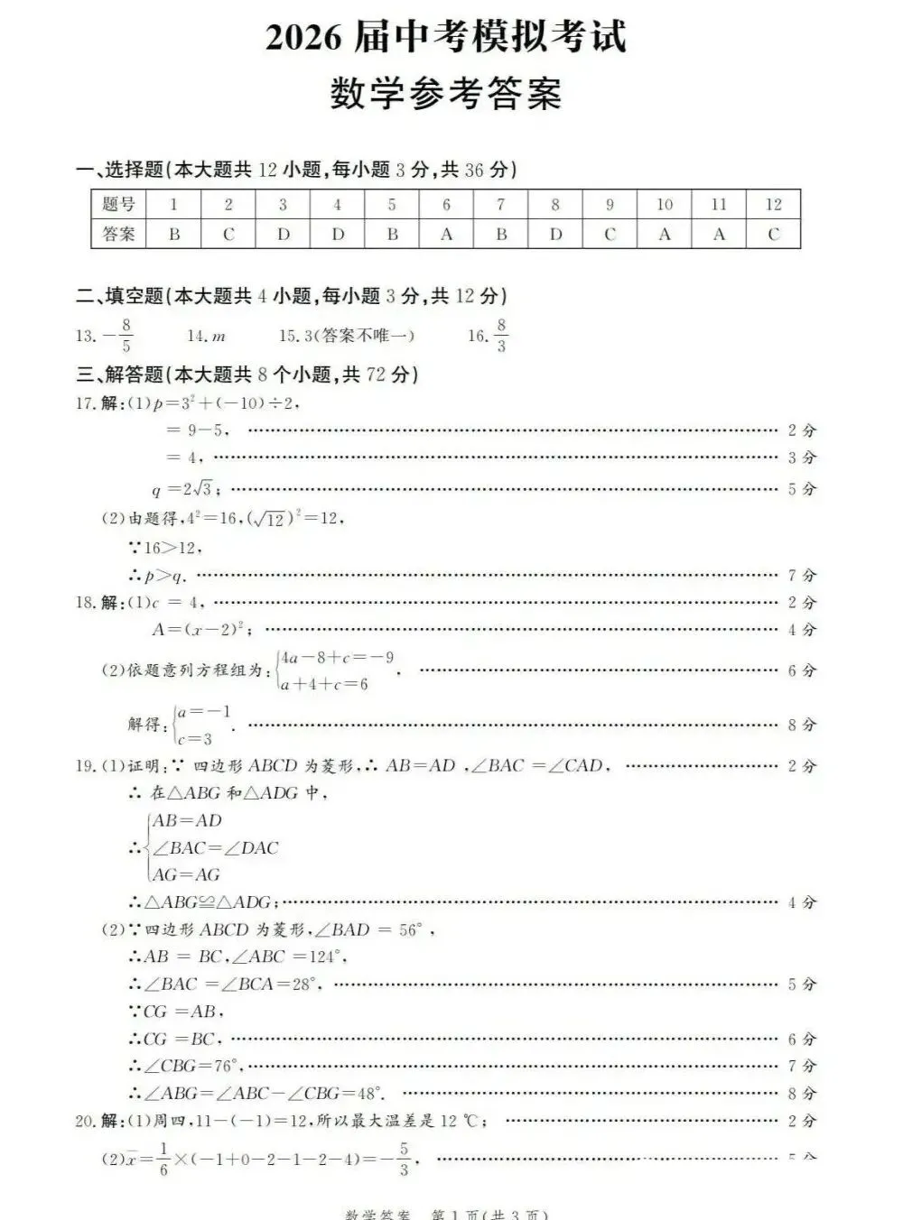 夸克「2026.4河北中考模拟数学试卷2套」