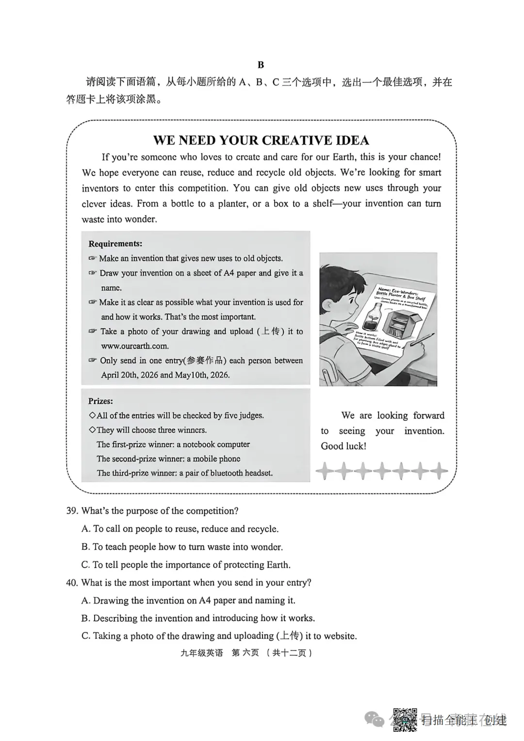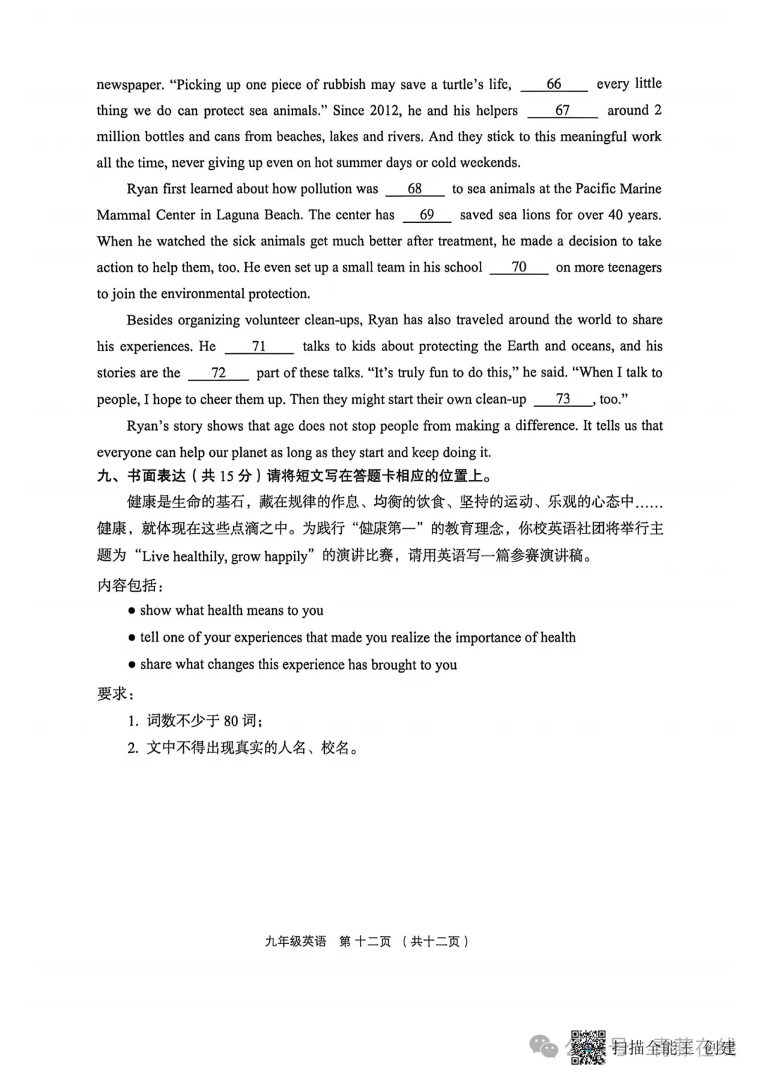 温馨提示:清晰版试卷和答案在下载地址里找,网盘免费下载