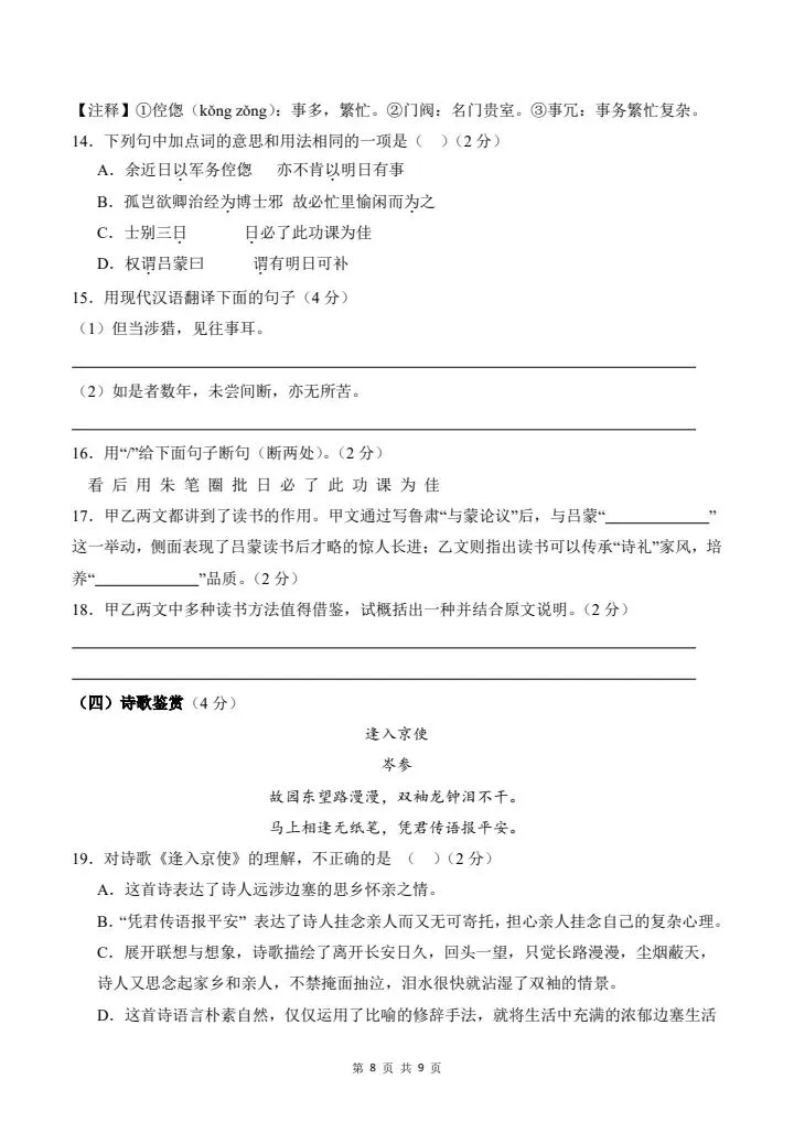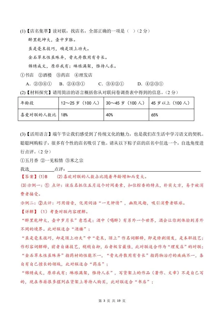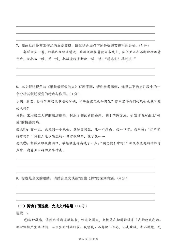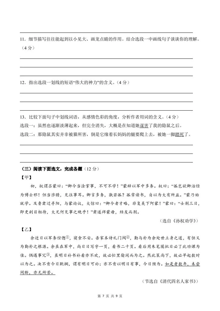 2026年春七年级下册语文《期中模拟试卷》附详细解析版,完整电子版可打印!