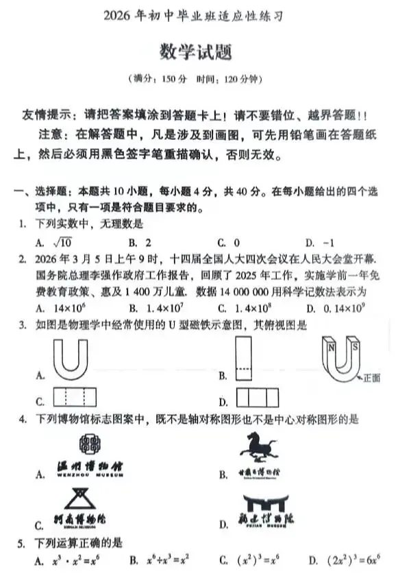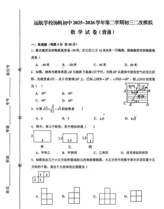[名校专题]2026中考数学模拟试卷集