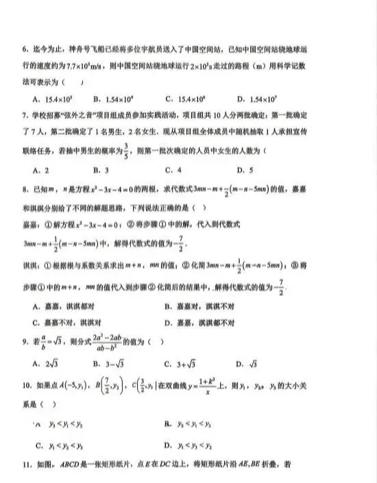 试卷收集| 2025-2026学年4月台州市中考一模