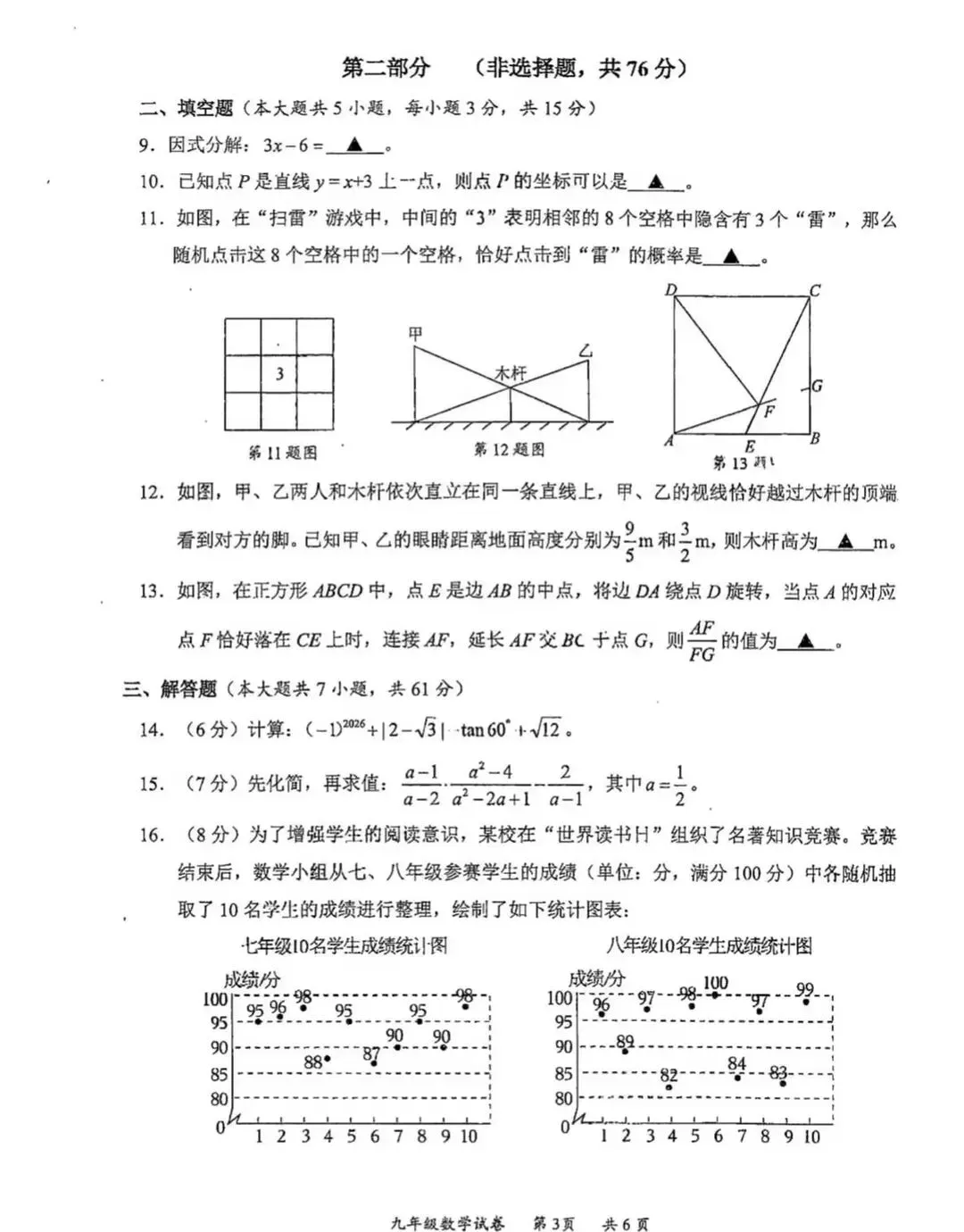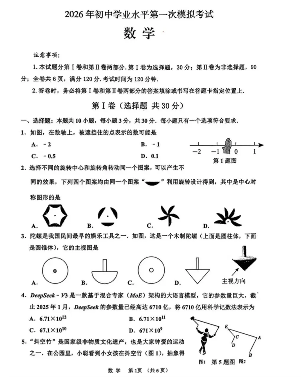 2026年平顶山市中考一模试卷及参考答案(七科全)