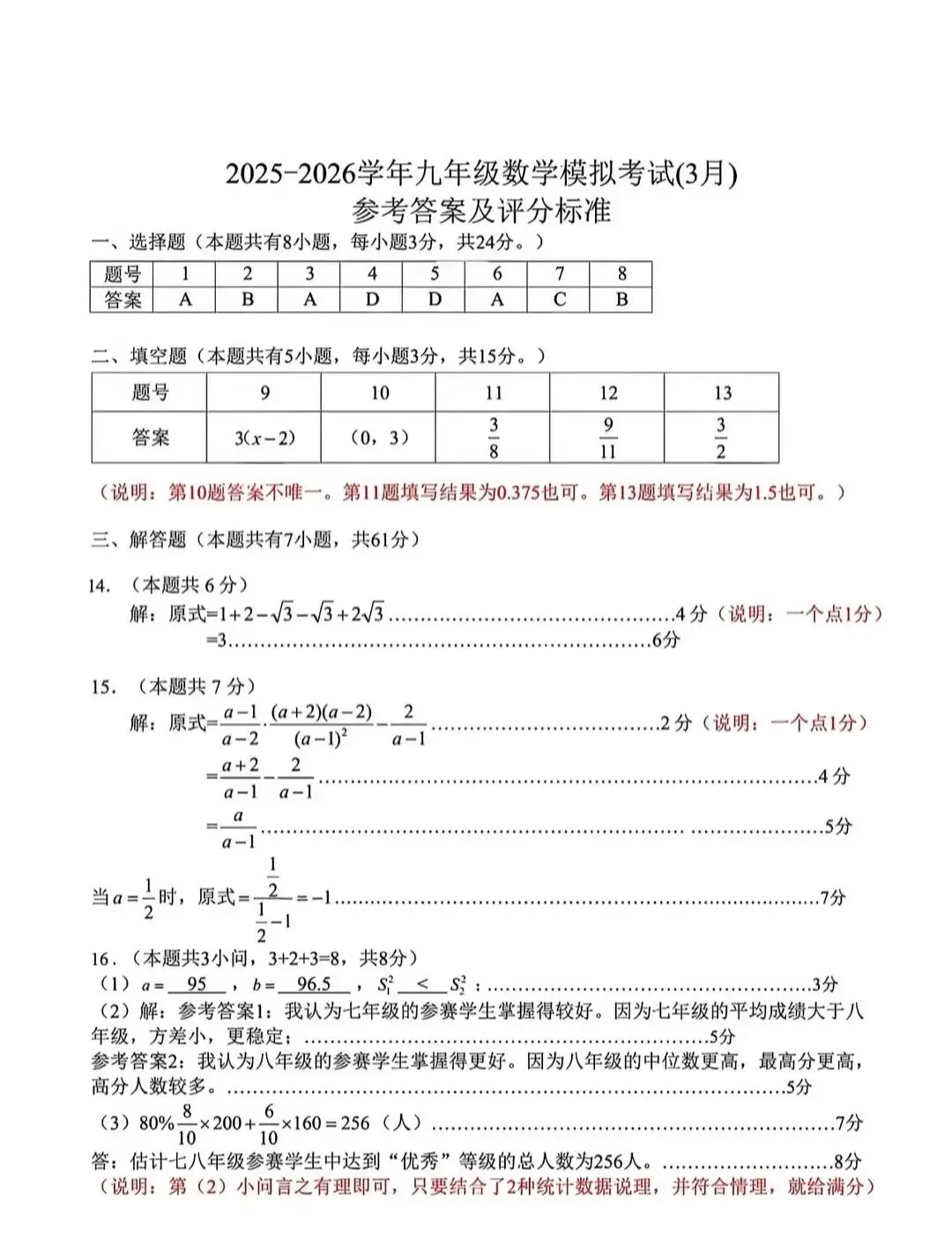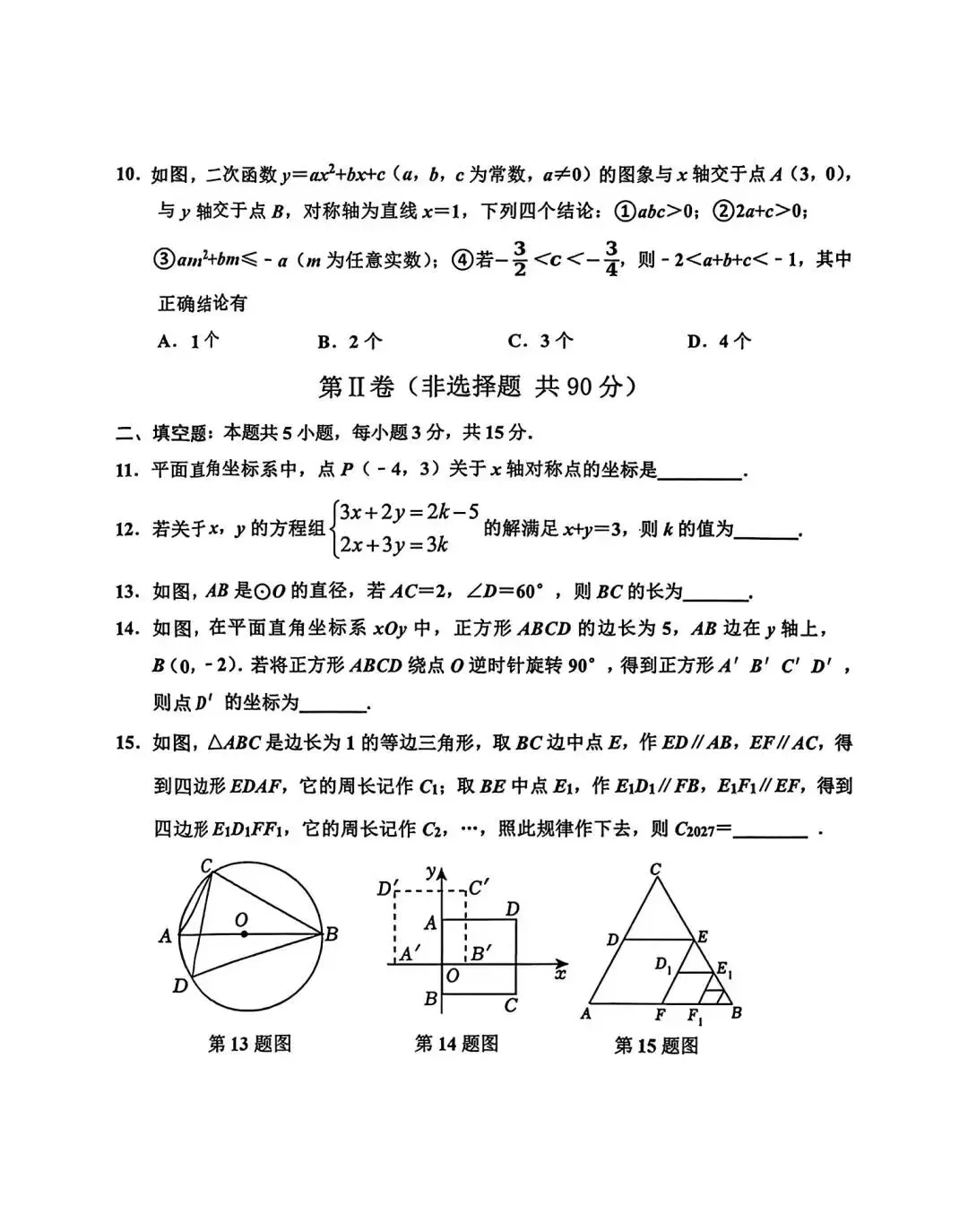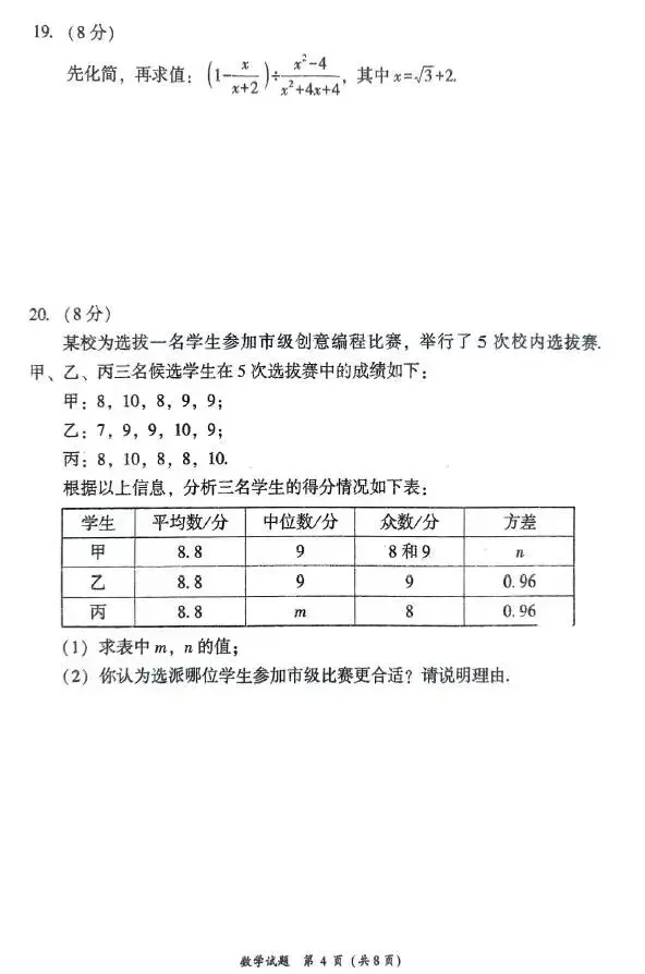 2026.4河北中考模拟数学试卷2套含答案(可下载)