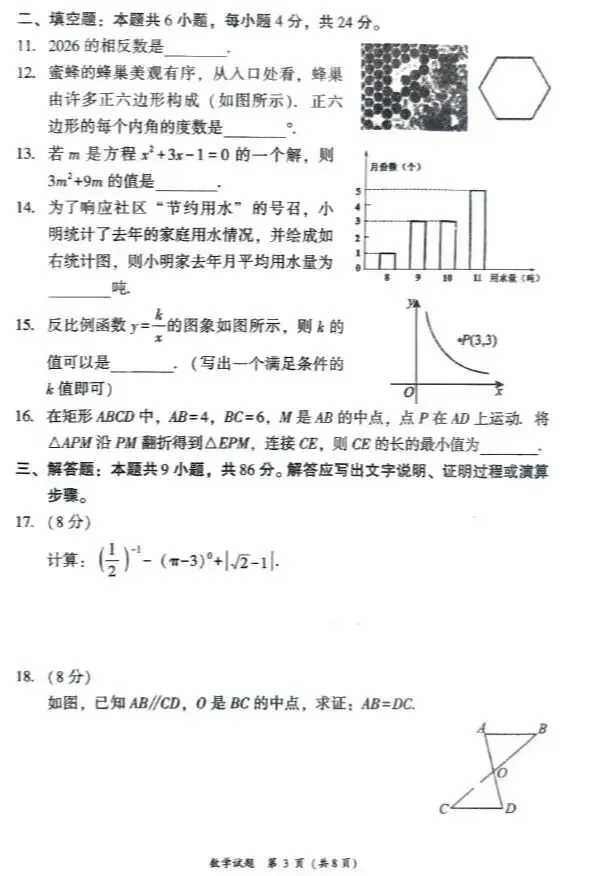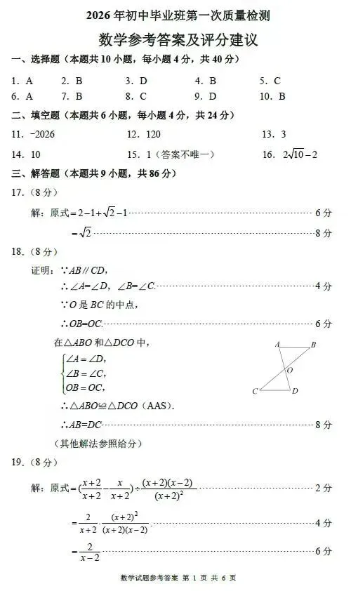 2026洛阳市涧西区中考数学第一次模拟试卷及答案