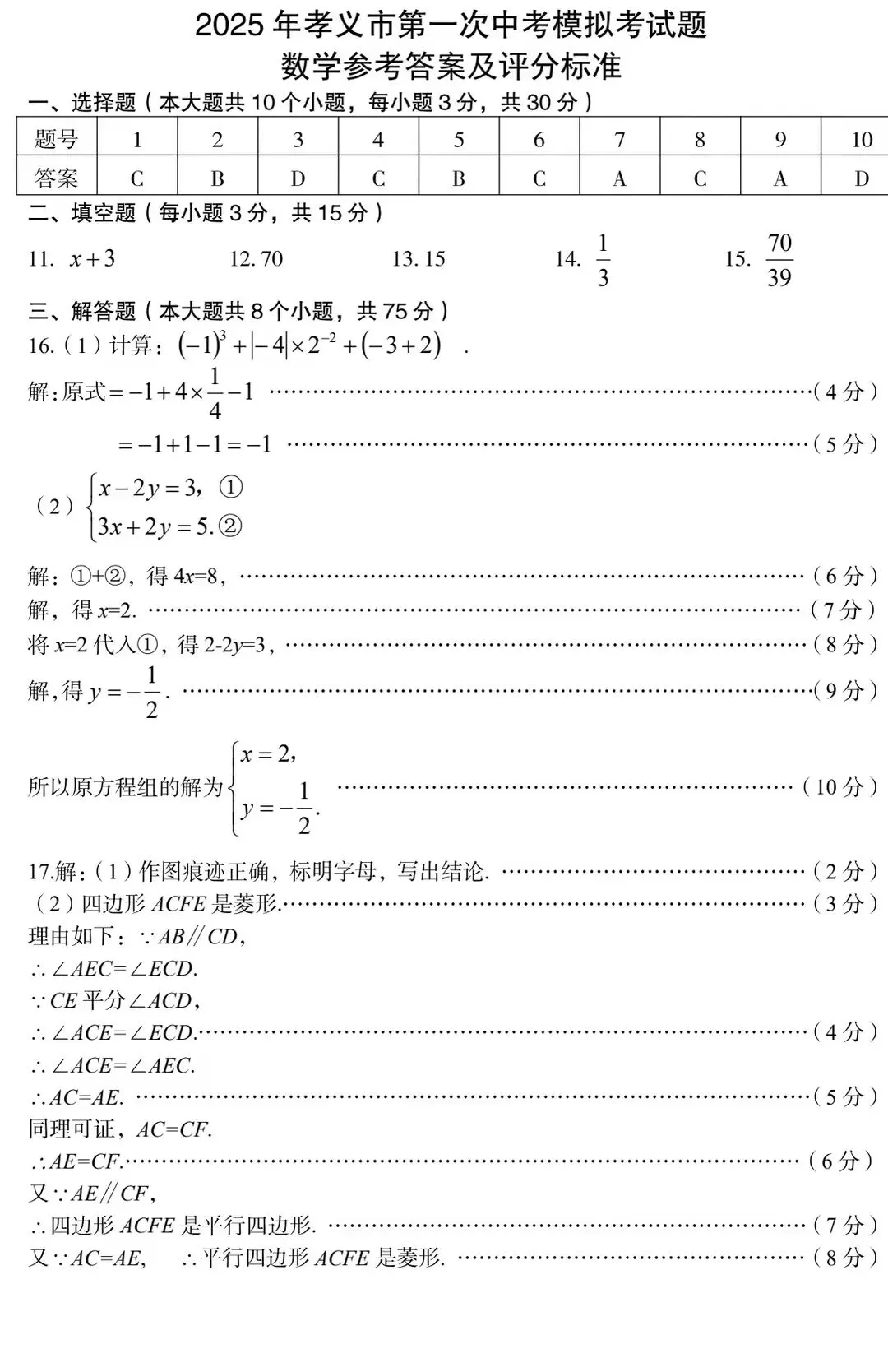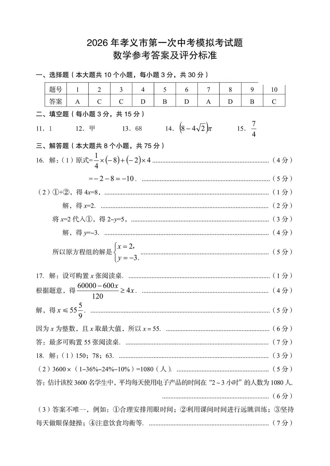2026.4孝义市中考一模全科试卷含答案(可下载)