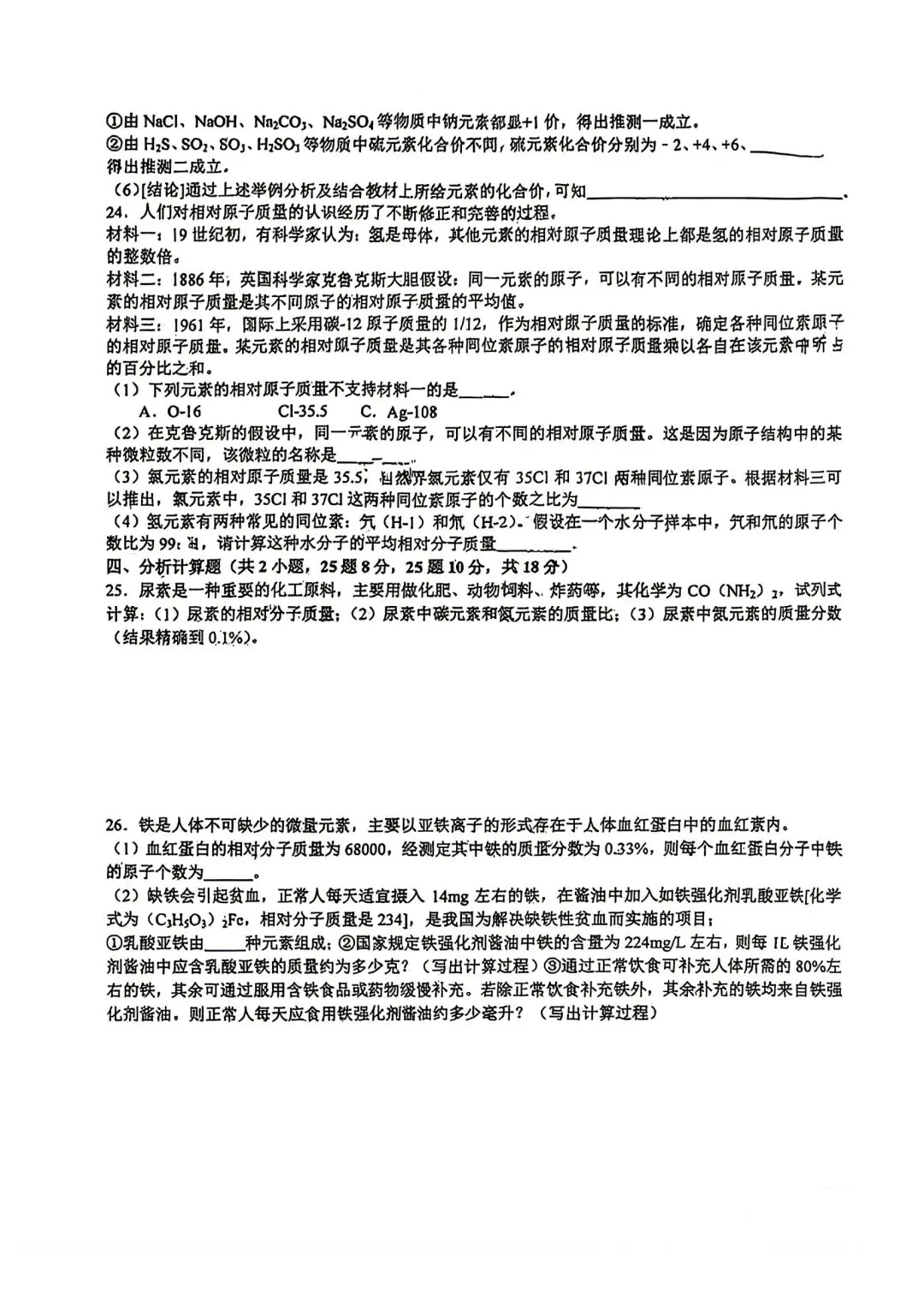 2026.4孝义市中考一模全科试卷含答案(可下载)