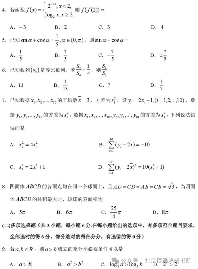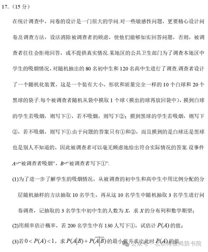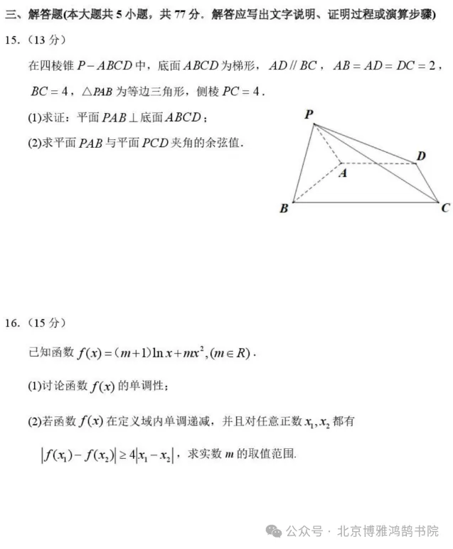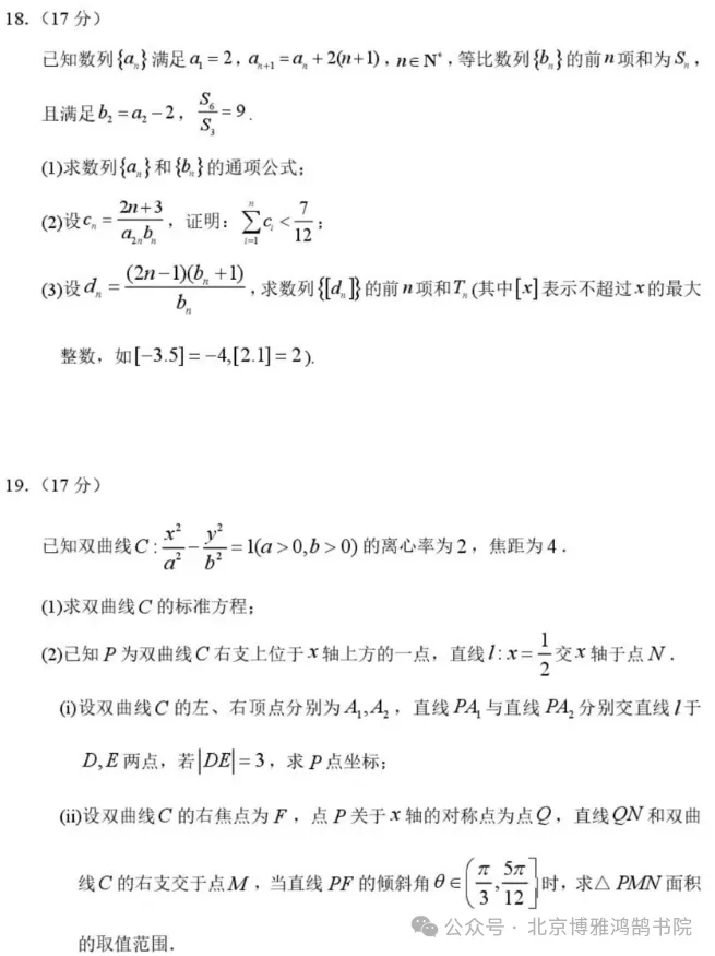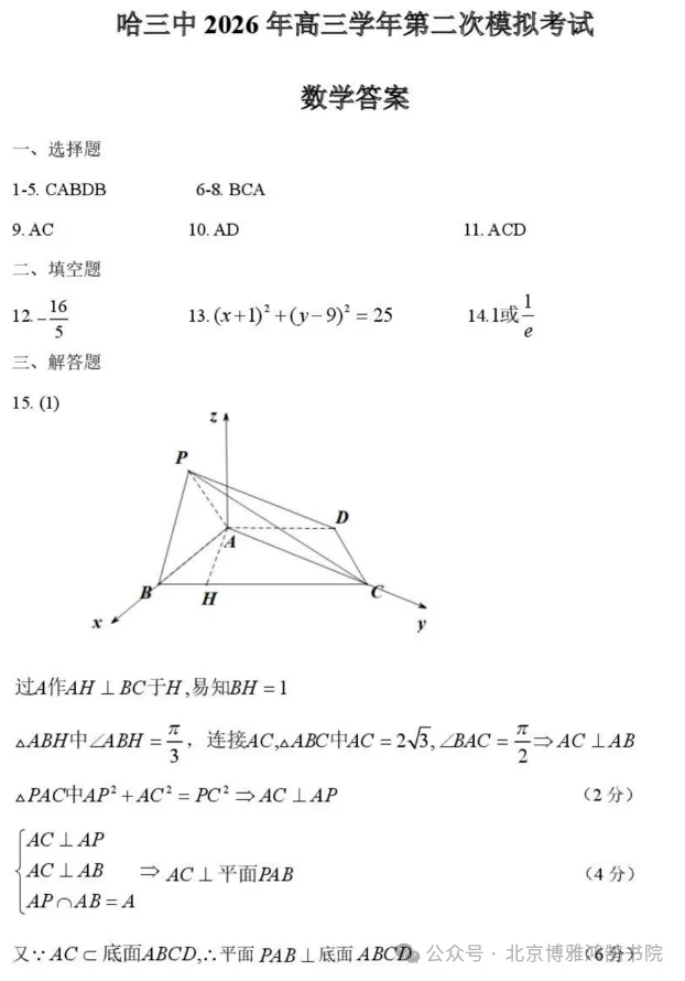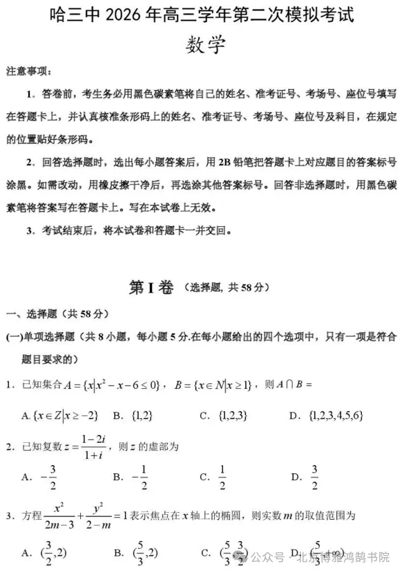 哈三中2026届高三下学期二模数学试卷+参考答案