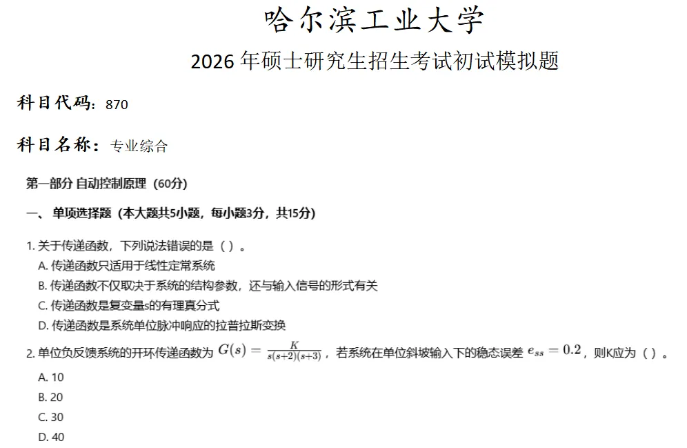 当前位置:首页>考研真题>哈尔滨工业大学870专业综合考研真题模拟